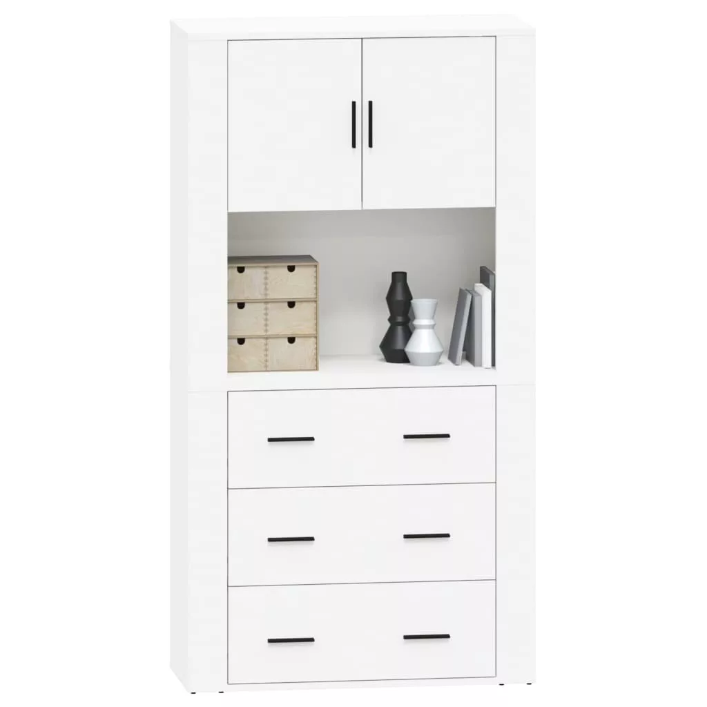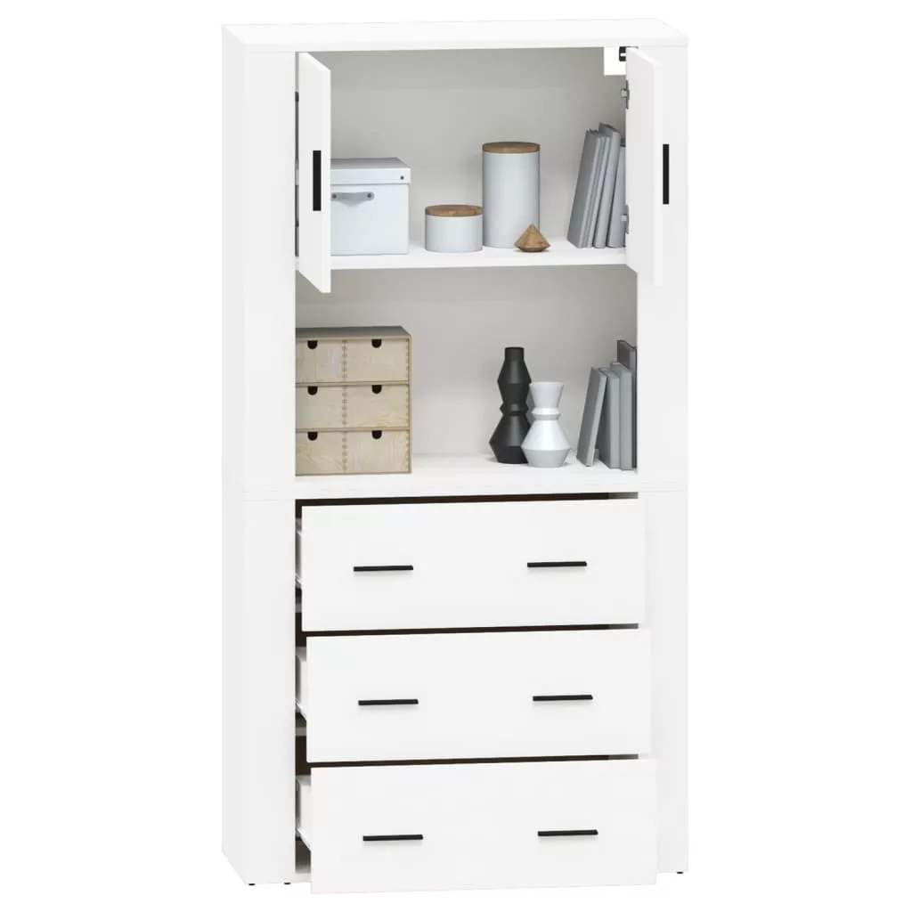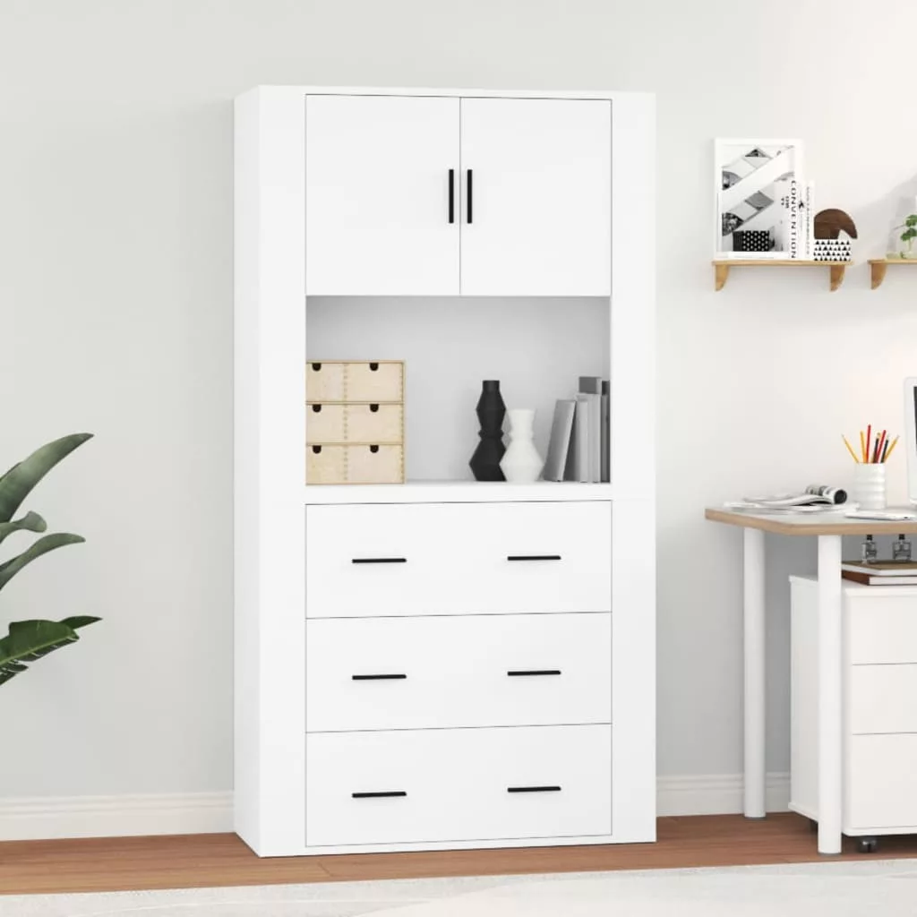 fehér szerelt fa magasszekrény