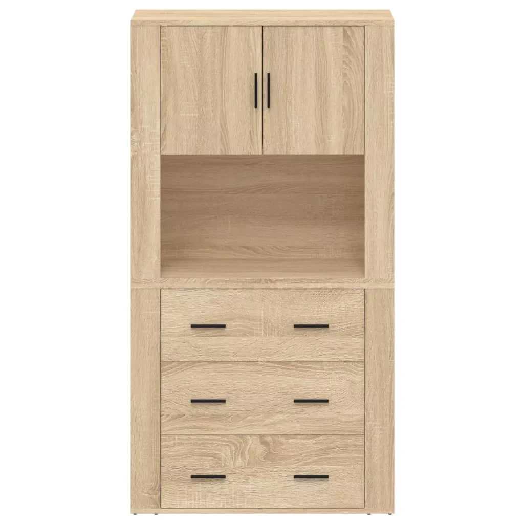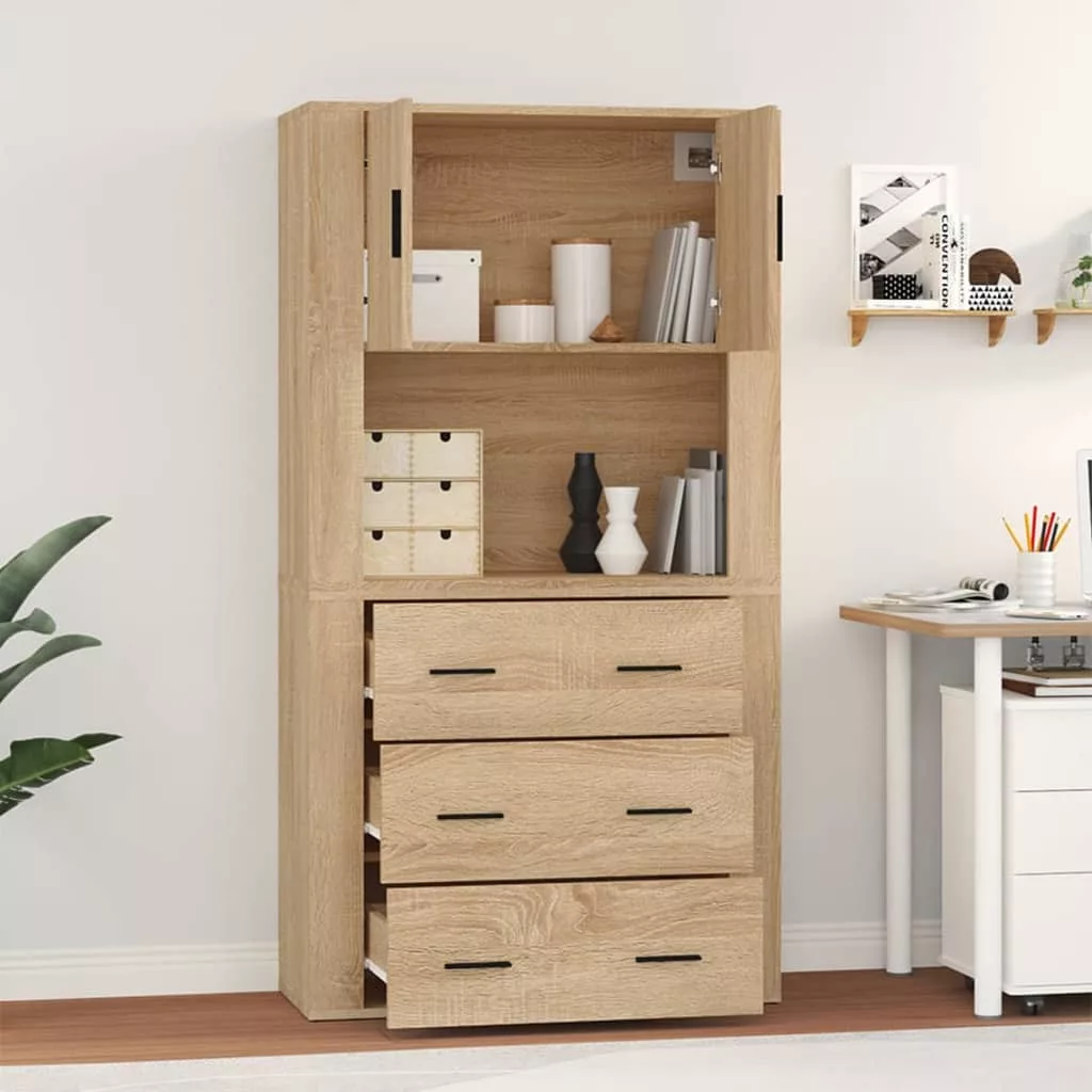 Stílusos magasszekrényt keres? Ez a magasszekrény egyedi bájt kölcsönöz meglévő belső terének! Tartós anyag: A szerelt fa kivételes minőségű, sima felületű, szilárd, stabil, és ellenáll a nedvességnek.Bőséges tárolóhely: A tálalószekrény bőséges helyet biztosít alapvető holmijai kézközelben történő rendezett tárolásához.Falra szerelhető funkció: A tárolószekrény falra szerelhető a tálaló tetejére, így tálalószekrény alakítható ki, amivel alapterületet takarít meg. Ezáltal maximalizálhatja a padlóterületet, illetve tisztán és rendezetten tarthatja a környezetét. Jó tudni:A szerelés megkönnyítése érdekében minden termék kézikönyvvel együtt kerül kiszállításra.A falon belüli csavarok és dugók nem alaptartozékok. Azt tanácsoljuk, hogy keressen és használjon kifejezetten az Ön falához megfelelő csavarokat és dugókat. Ha nem biztos benne, konzultálhat egy szakemberrel. Kérjük, olvassa el és kövesse az utasítások minden lépését. Figyelem:A felborulás elkerülése érdekében ezt a terméket a mellékelt fali rögzítőeszközzel kell használni.