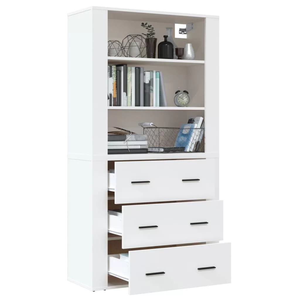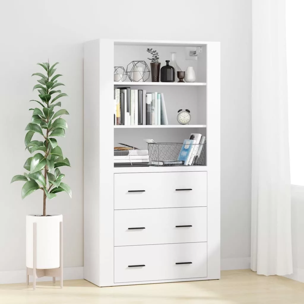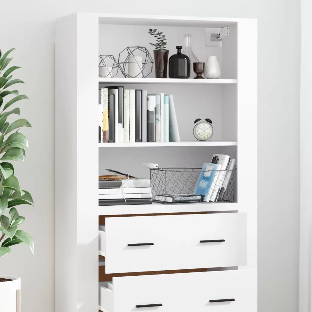 fehér szerelt fa magasszekrény