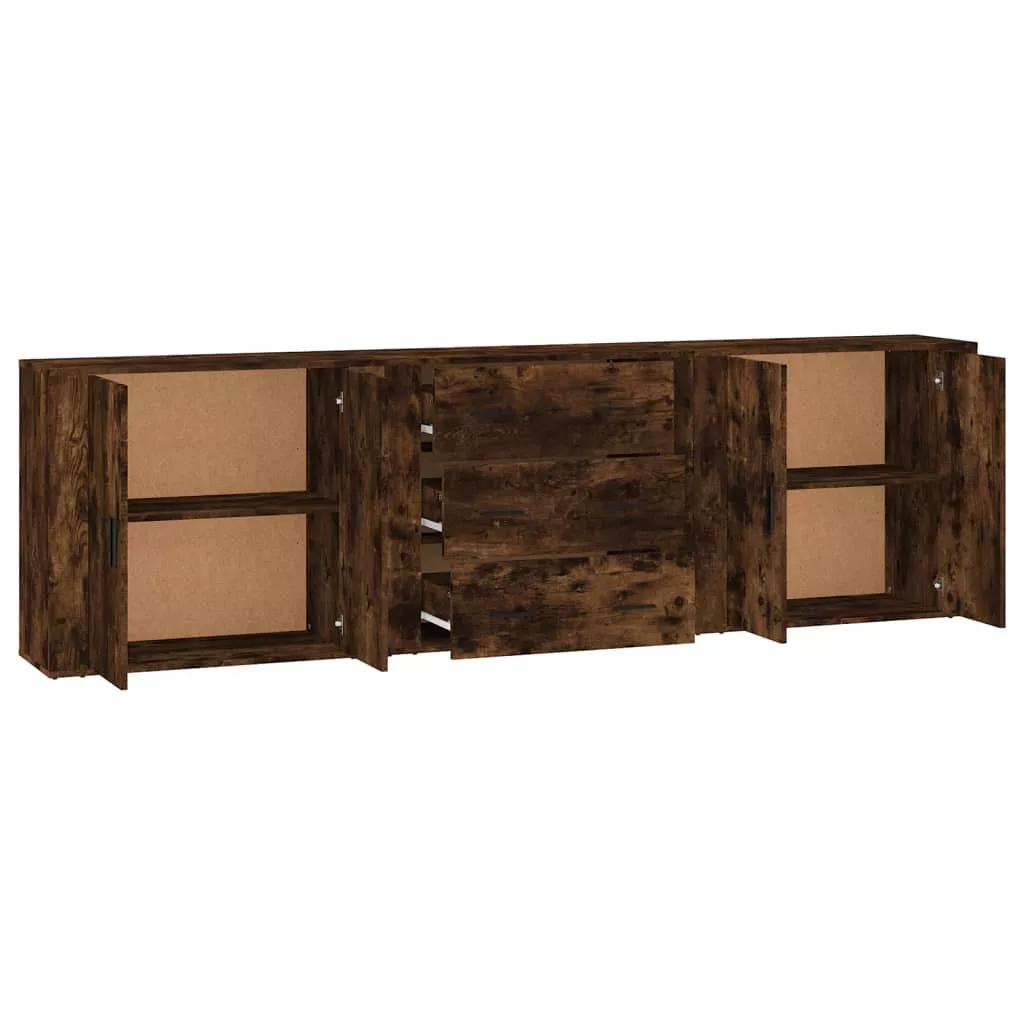 3 db füstös tölgy szerelt fa tálalószekrény