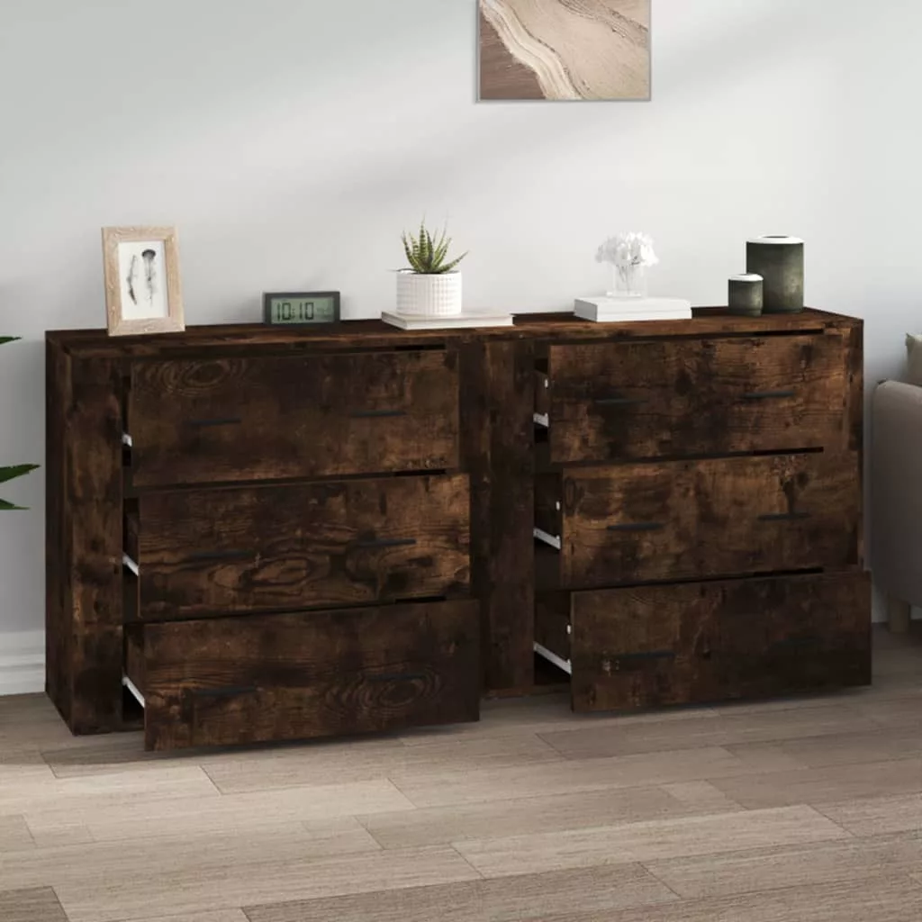 2 db füstös tölgy szerelt fa tálalószekrény