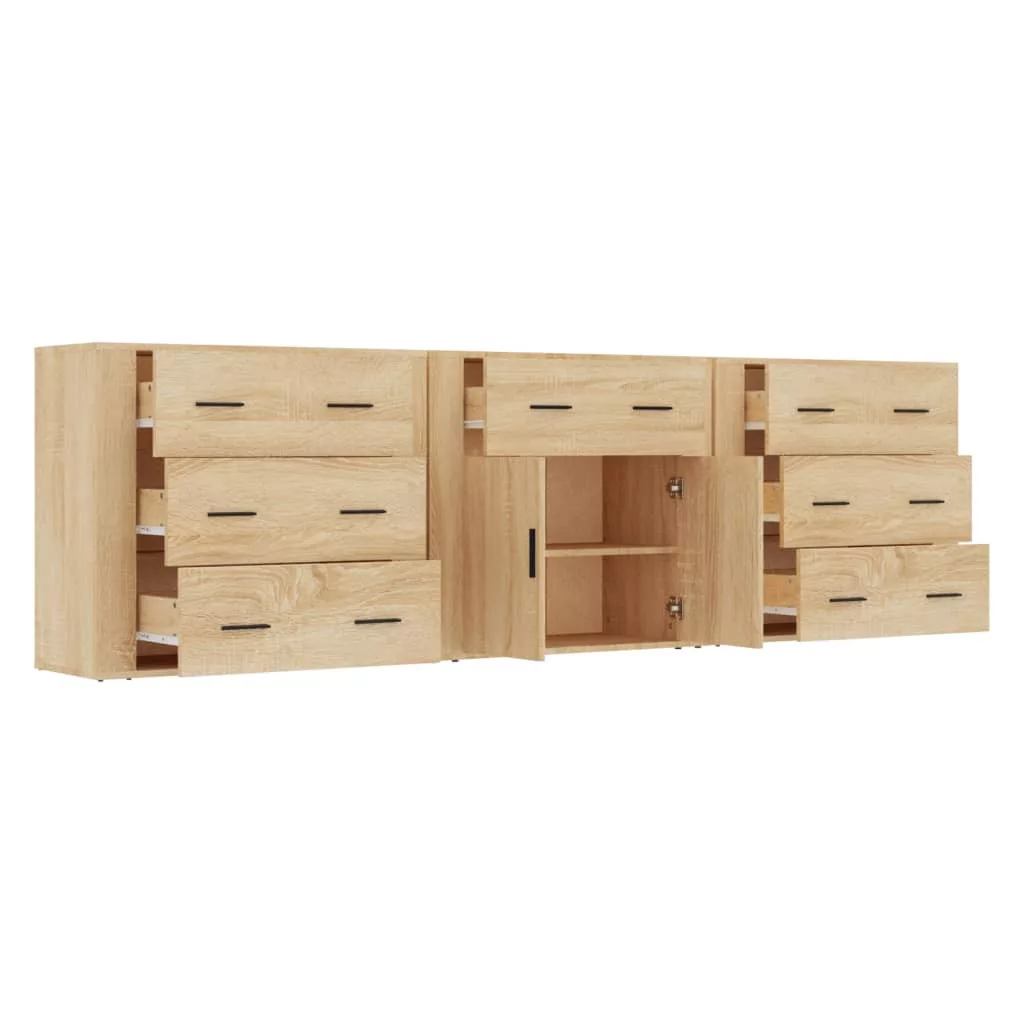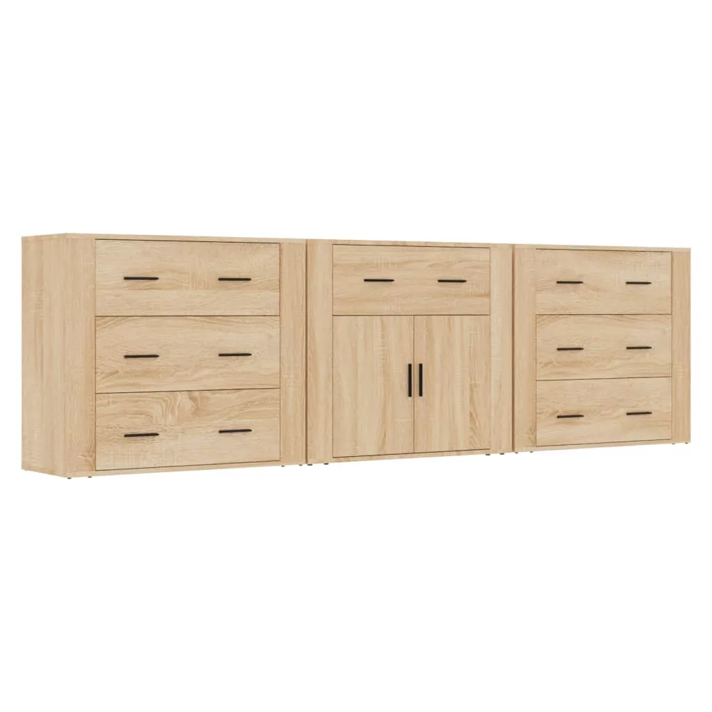 3 db sonoma tölgyszínű szerelt fa tálalószekrény