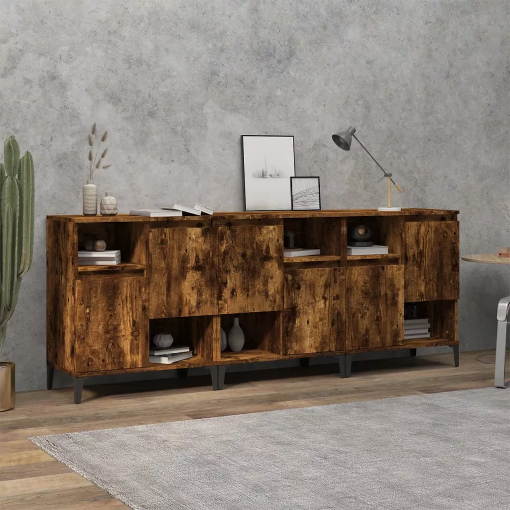 3 db füstös tölgy színű szerelt fa tálalószekrény 60x35x70 cm