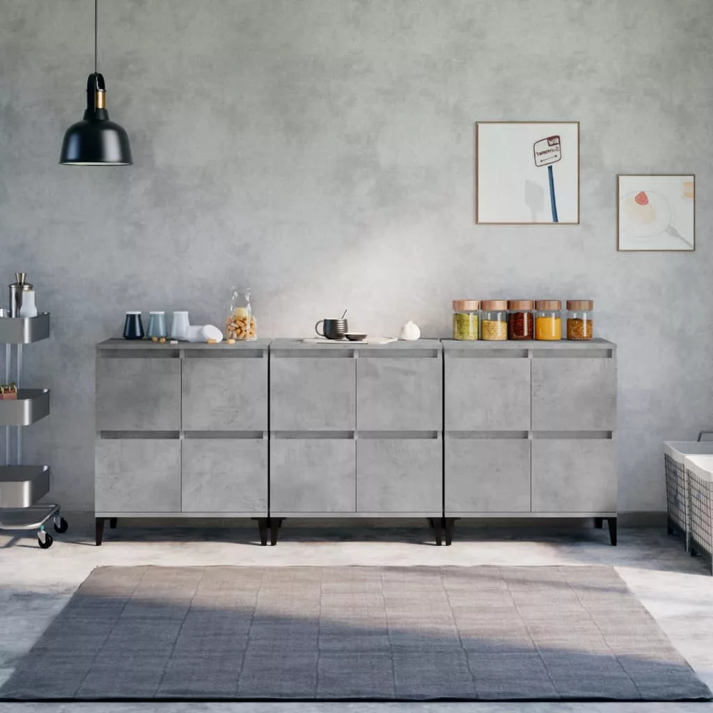 3 db betonszürke szerelt fa tálalószekrény 60 x 35 x 70 cm