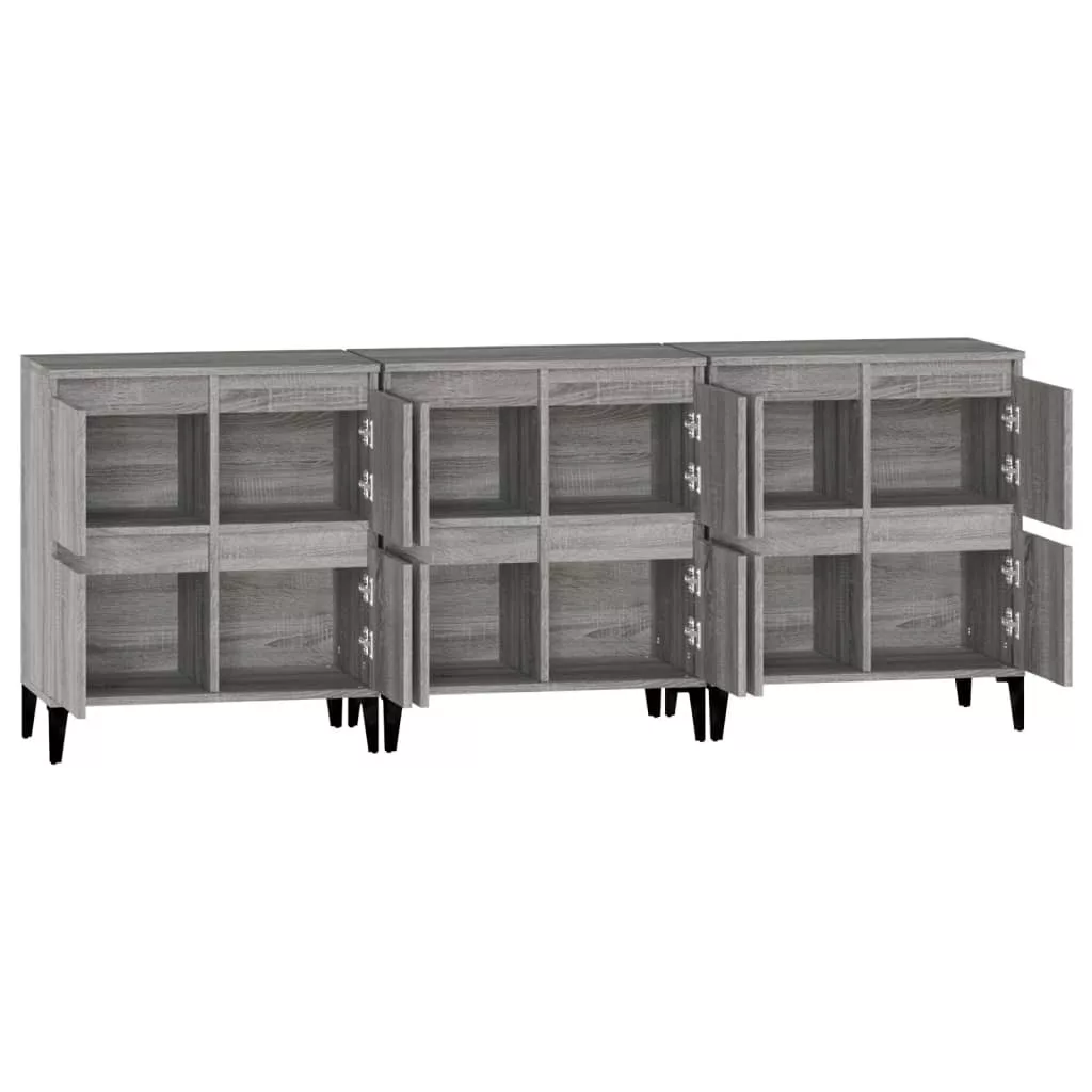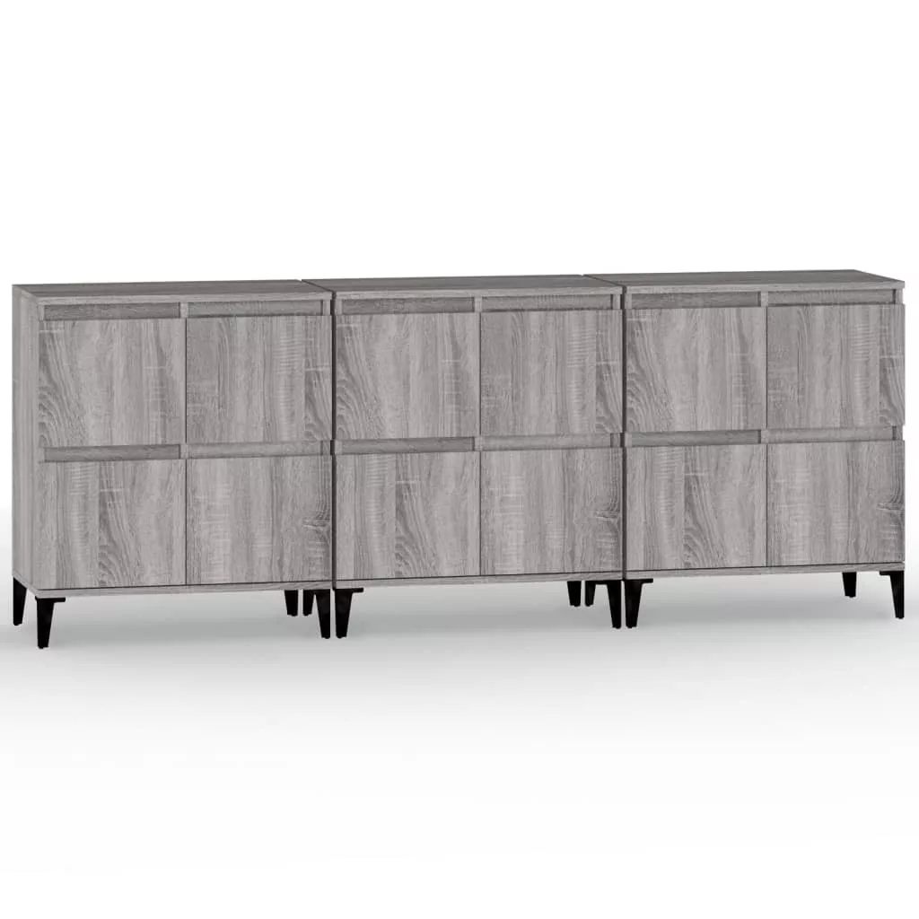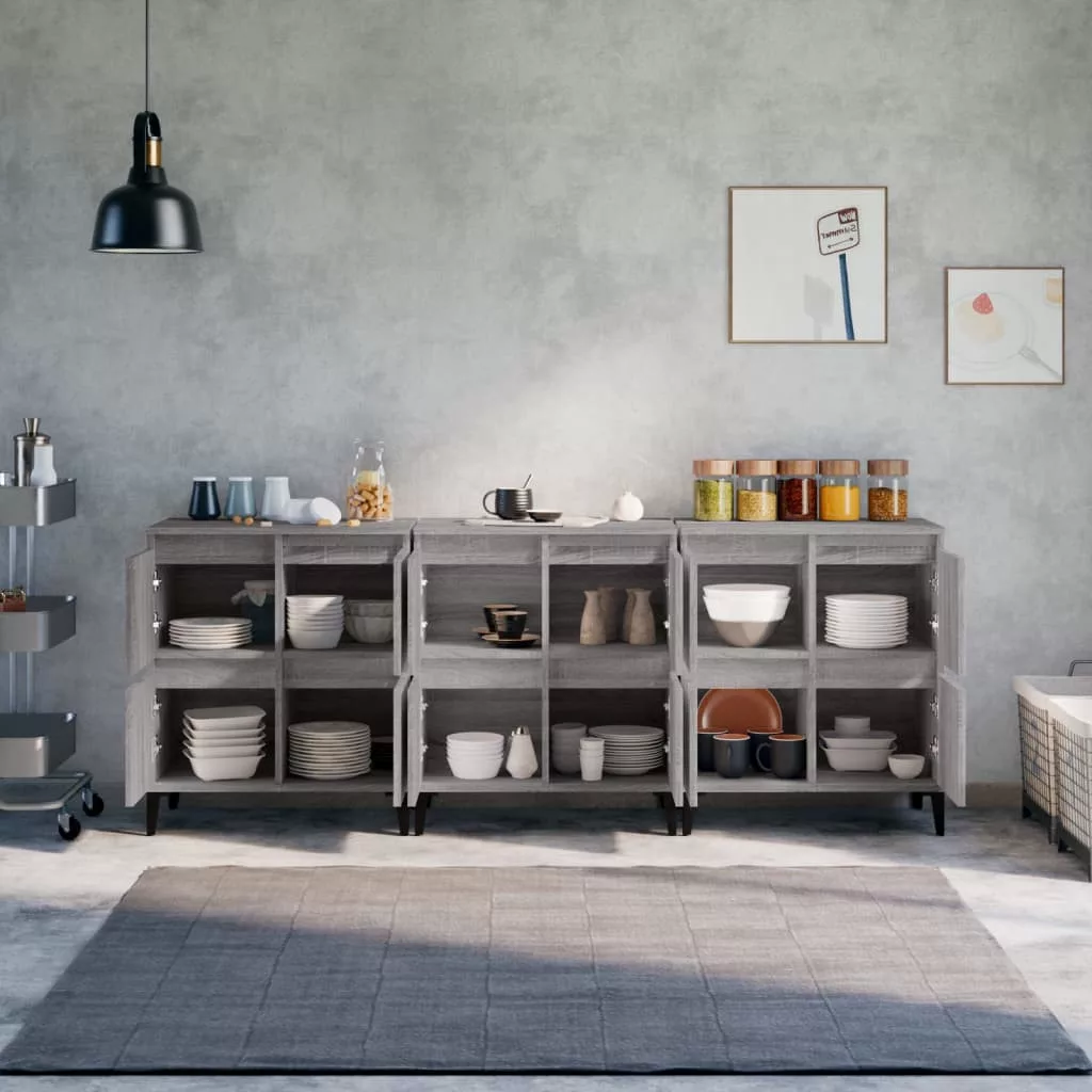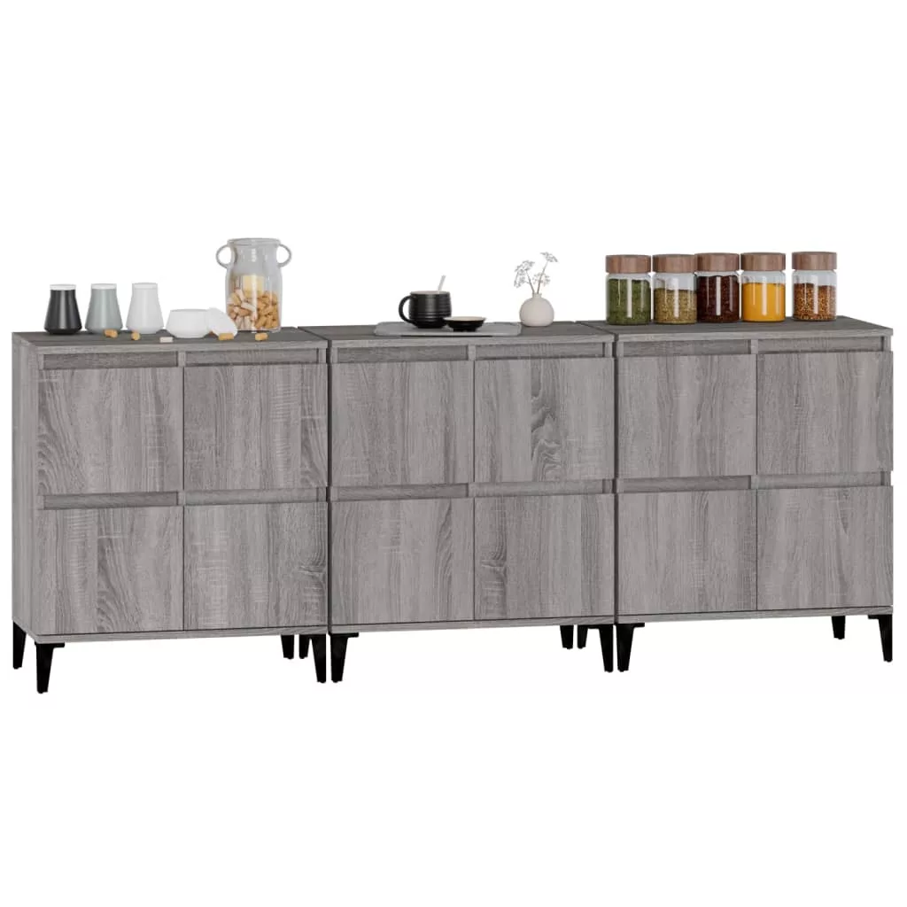 3 db szürke sonoma színű szerelt fa tálalószekrény 60x35x70 cm