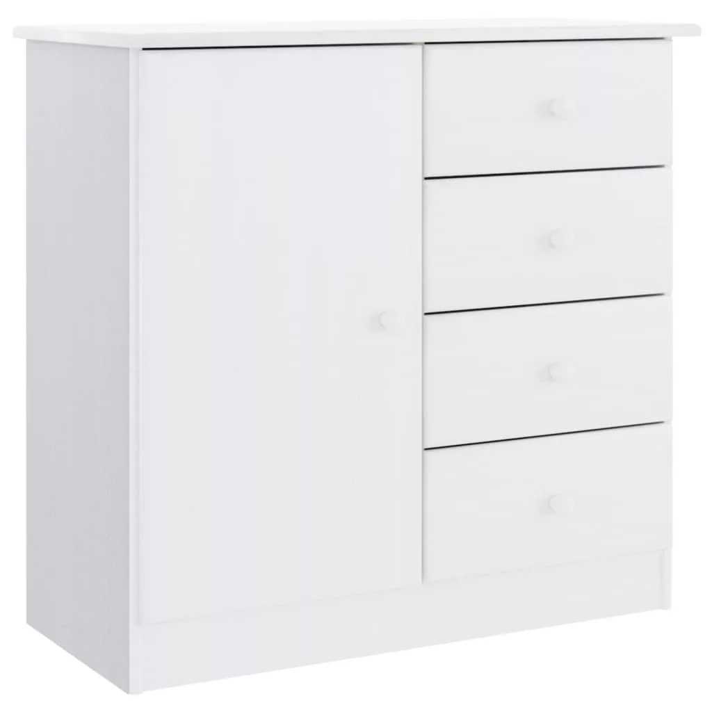 ALTA fehér tömör fenyőfa tálalószekrény 77x35x165 cm