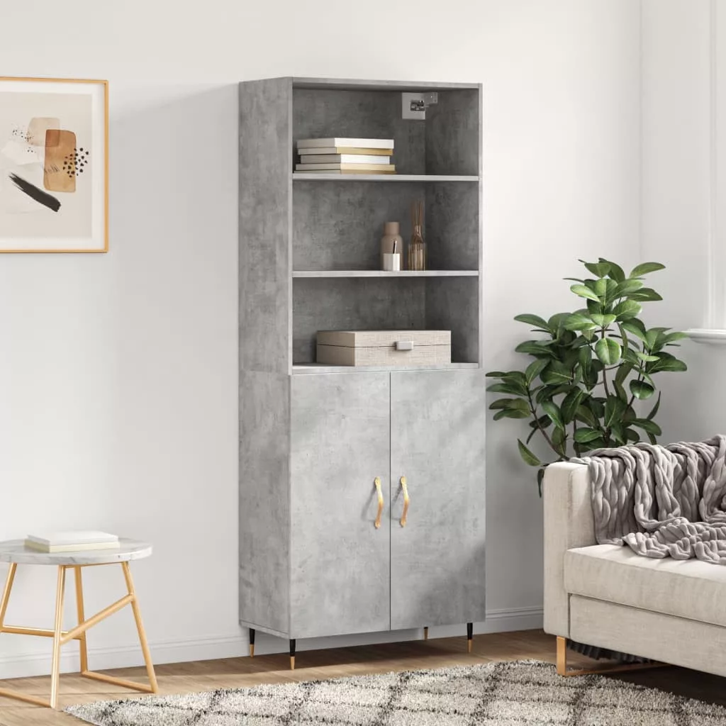 betonszürke szerelt fa magasszekrény 69,5 x 34 x 180 cm