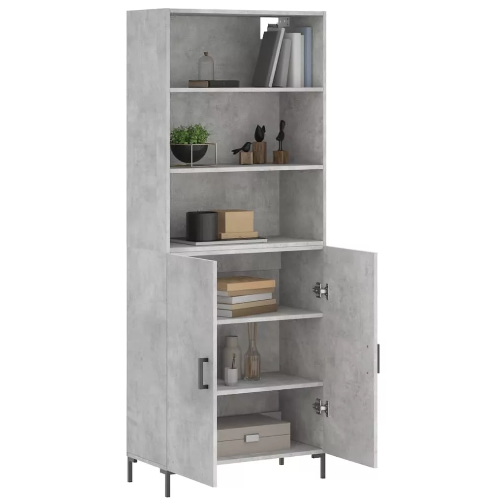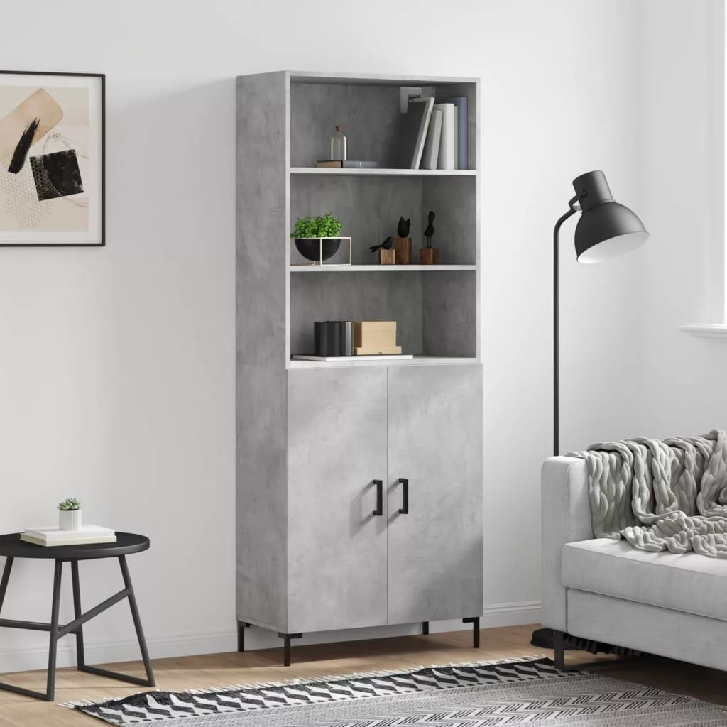 betonszürke szerelt fa magasszekrény 69,5 x 34 x 180 cm