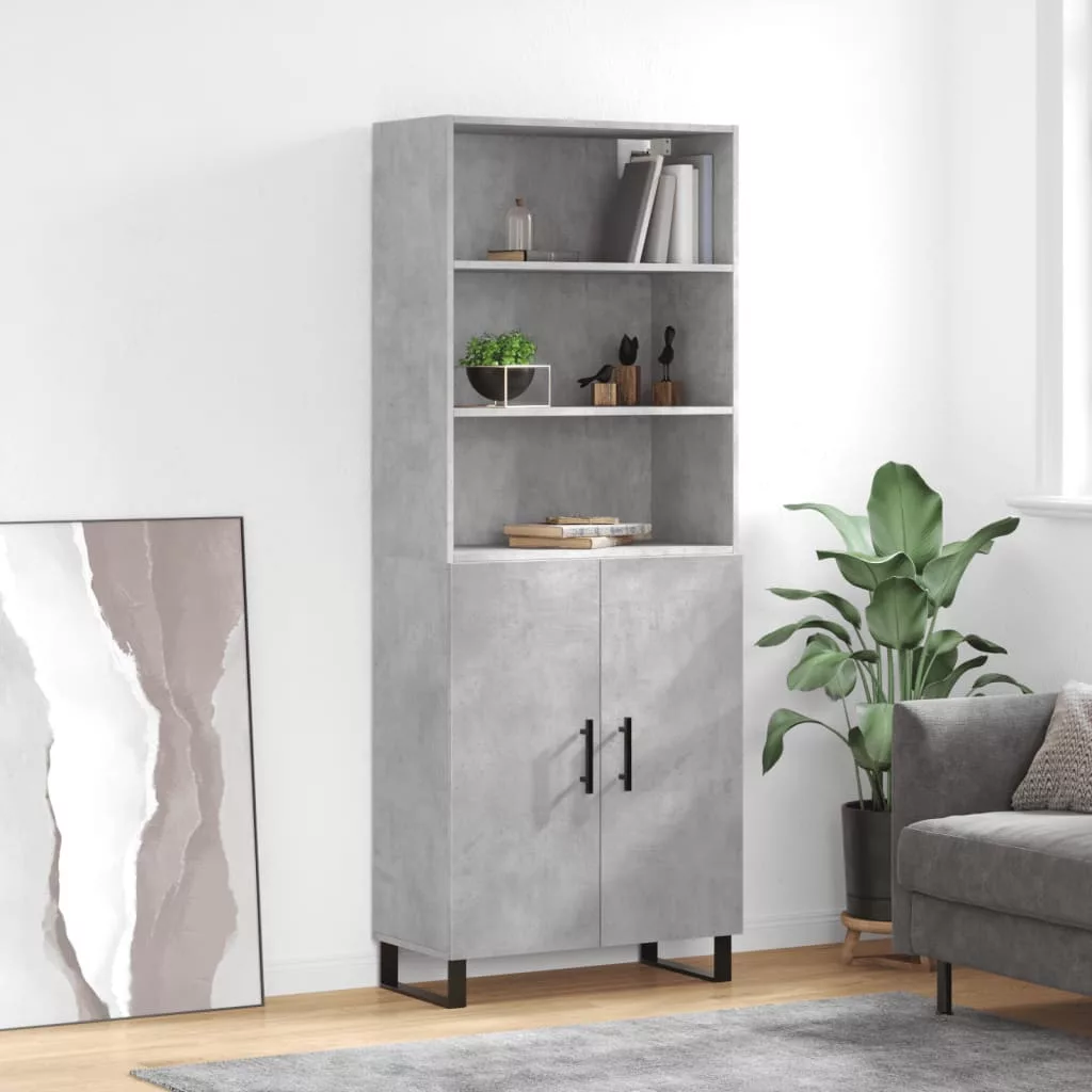 betonszürke szerelt fa magasszekrény 69,5 x 34 x 180 cm