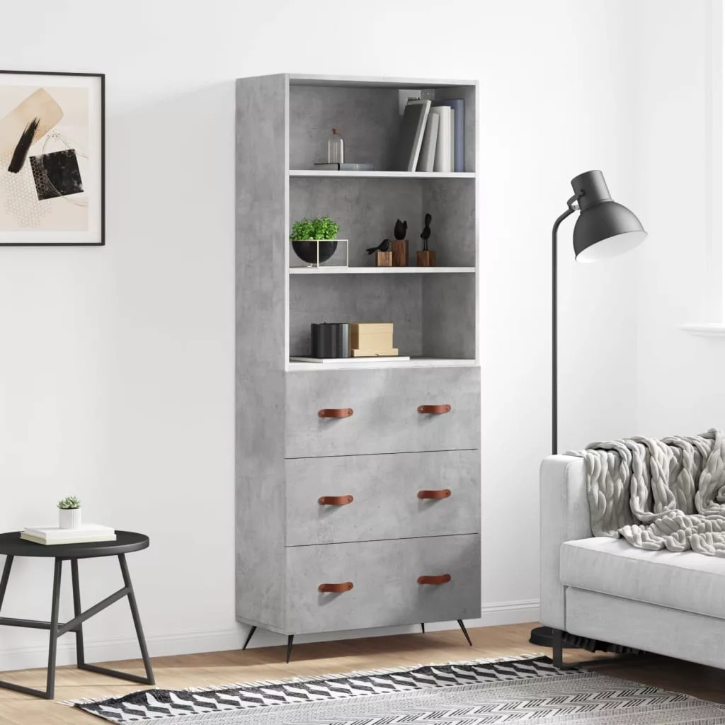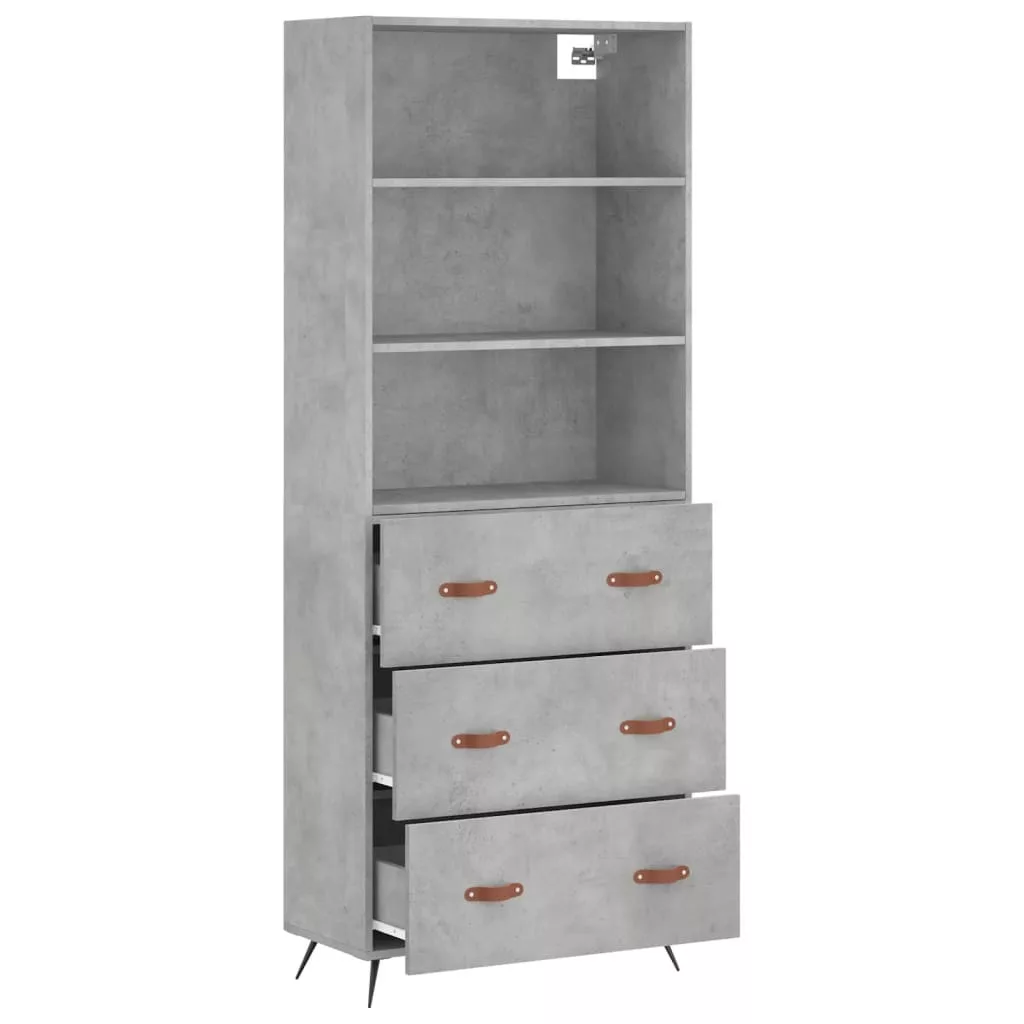 betonszürke szerelt fa magasszekrény 69,5 x 34 x 180 cm