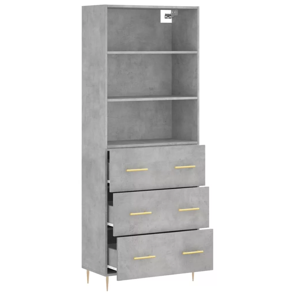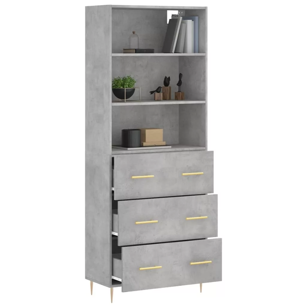 betonszürke szerelt fa magasszekrény 69,5 x 34 x 180 cm