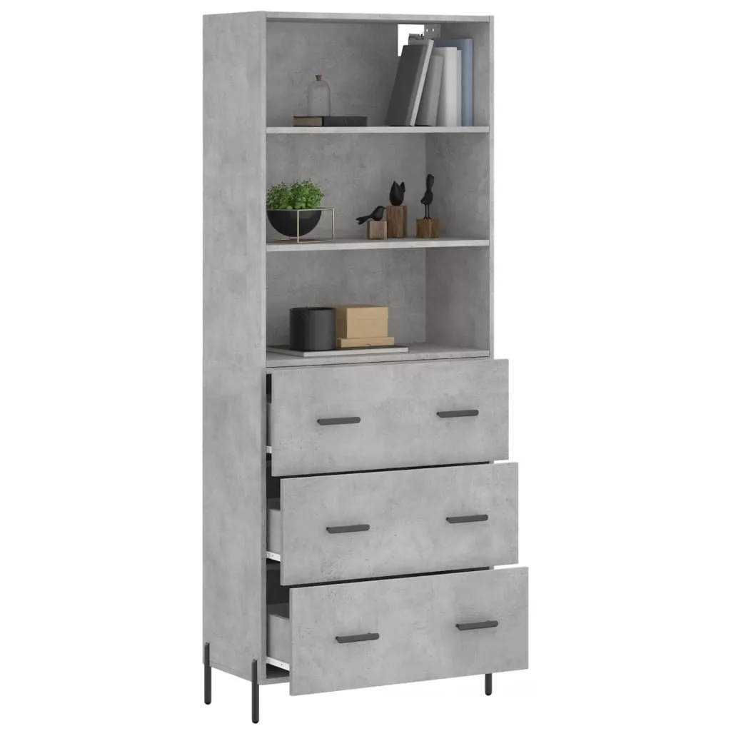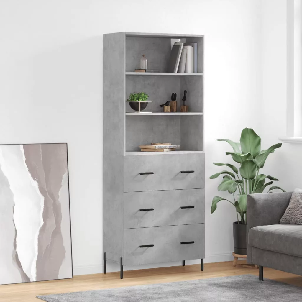 betonszürke szerelt fa magasszekrény 69,5 x 34 x 180 cm