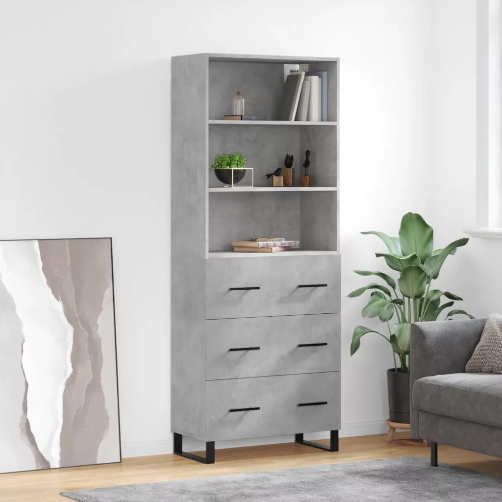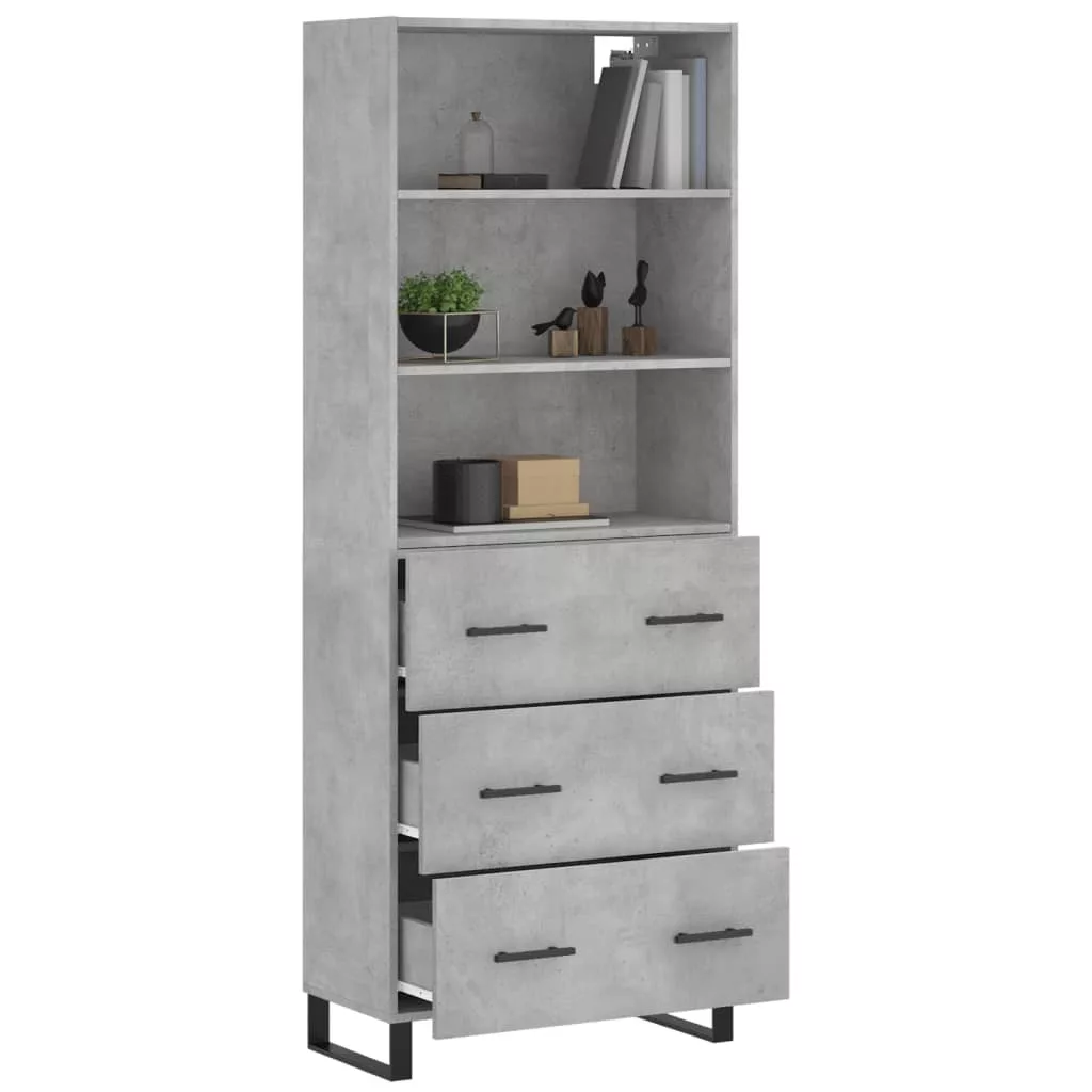 betonszürke szerelt fa magasszekrény 69,5 x 34 x 180 cm