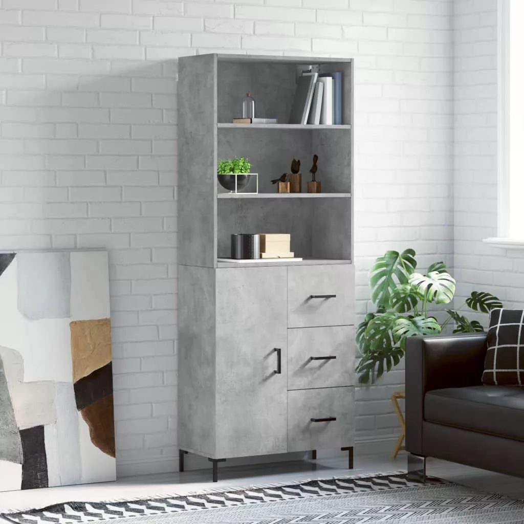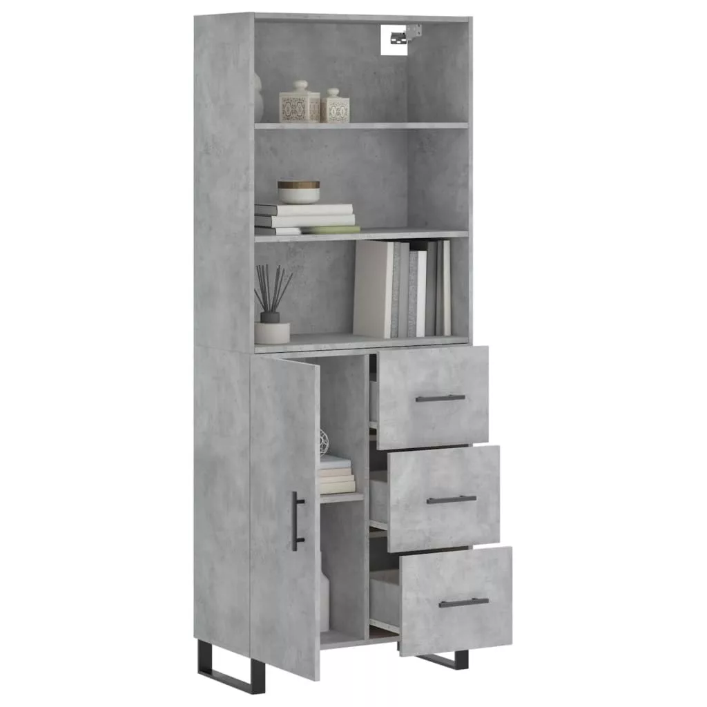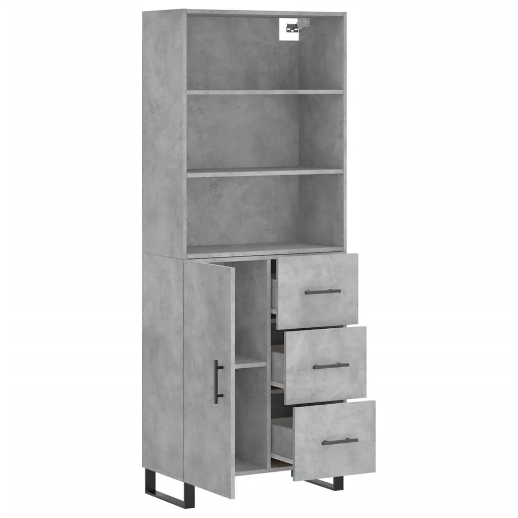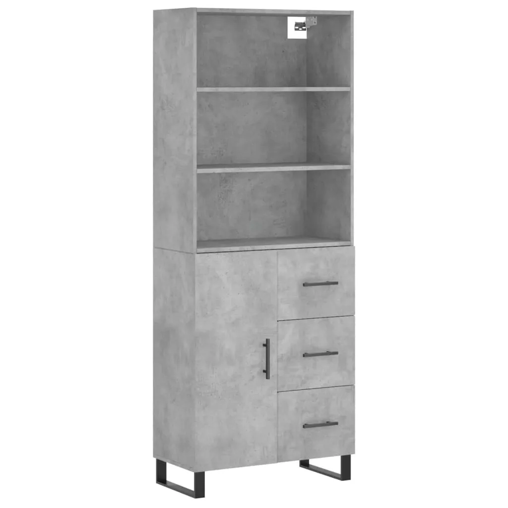 betonszürke szerelt fa magasszekrény 69,5 x 34 x 180 cm