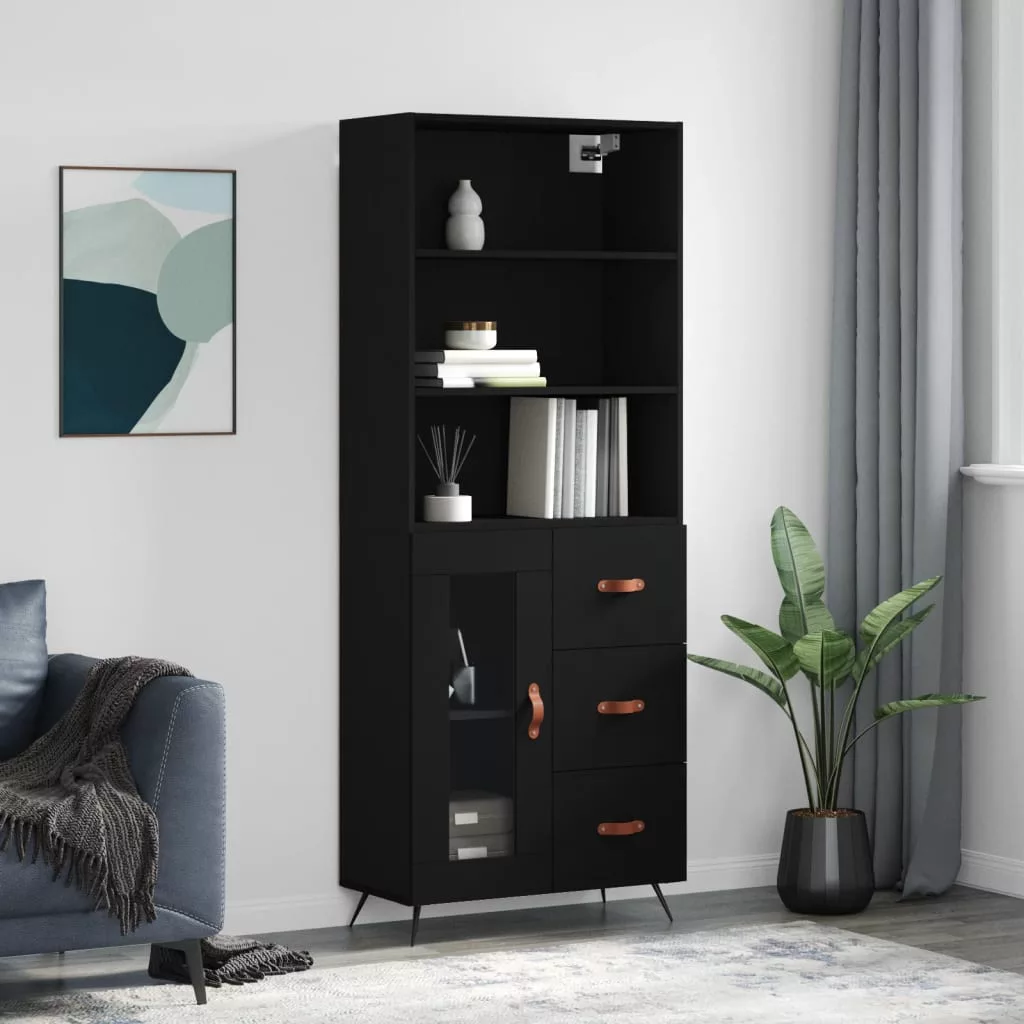 fekete szerelt fa magasszekrény 69,5 x 34 x 180 cm