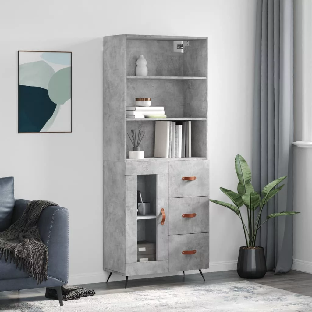 betonszürke szerelt fa magasszekrény 69,5 x 34 x 180 cm