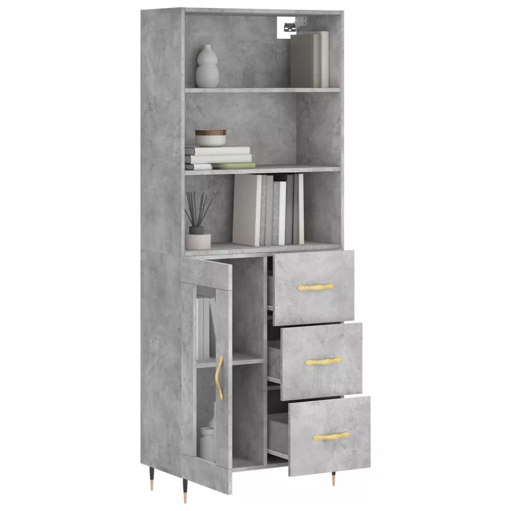 betonszürke szerelt fa magasszekrény 69,5 x 34 x 180 cm