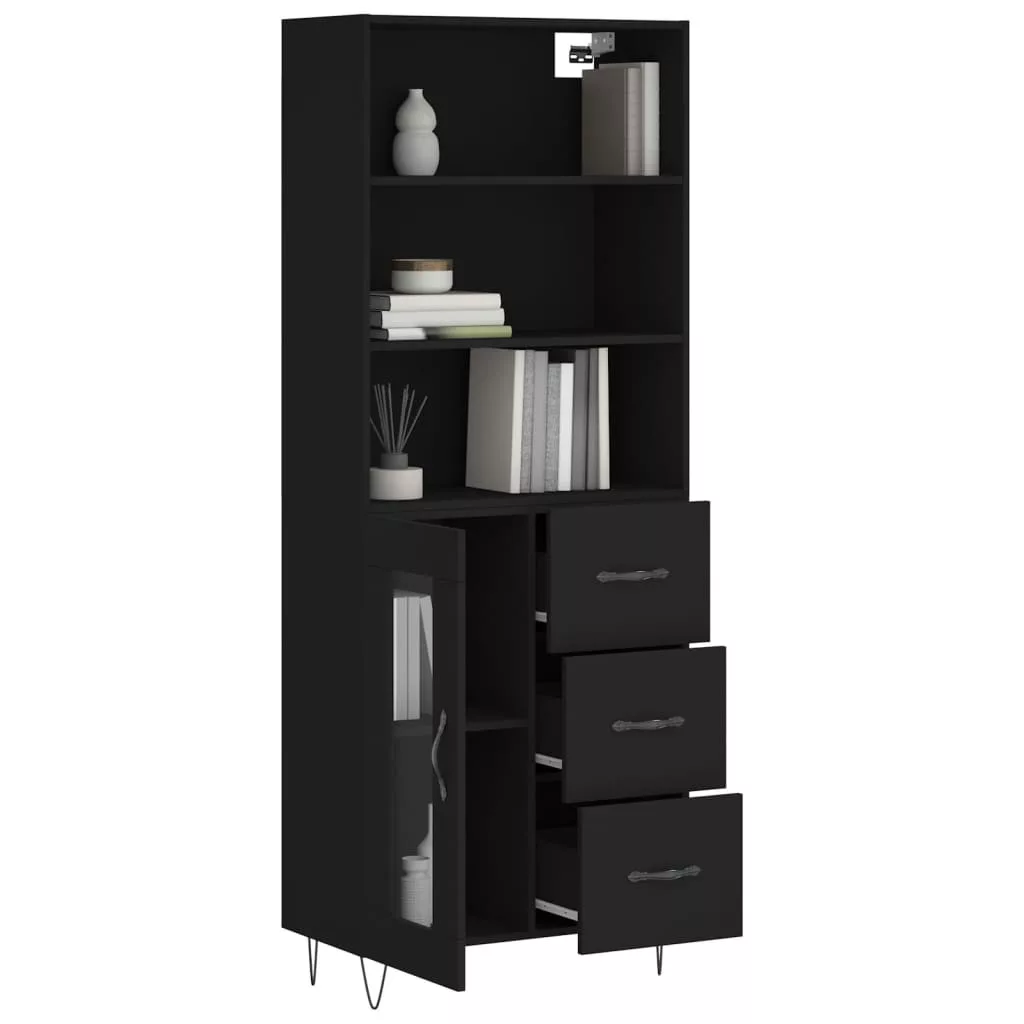 fekete szerelt fa magasszekrény 69,5 x 34 x 180 cm