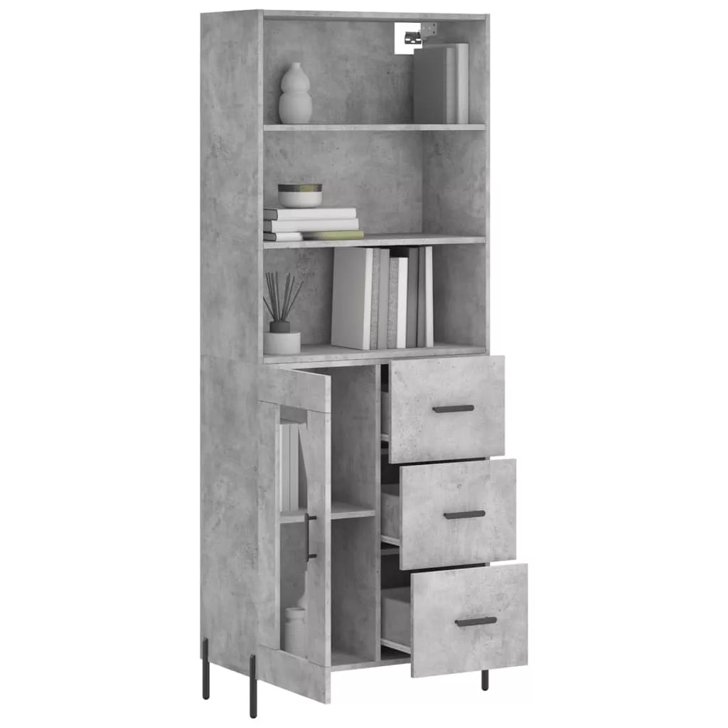 betonszürke szerelt fa magasszekrény 69,5 x 34 x 180 cm