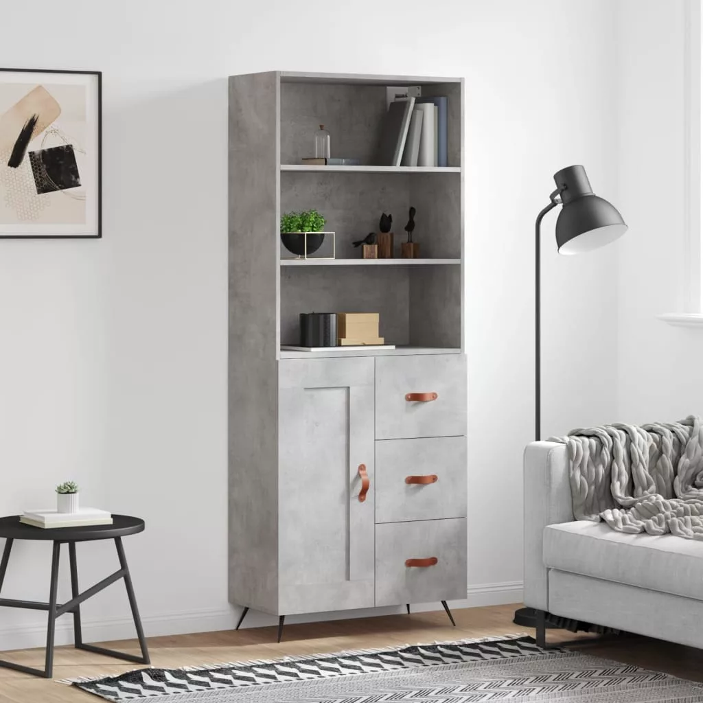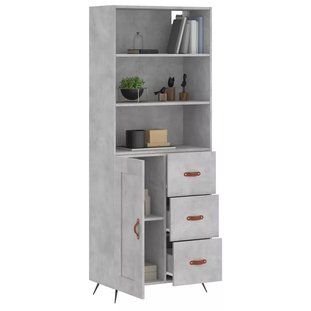 betonszürke szerelt fa magasszekrény 69,5 x 34 x 180 cm