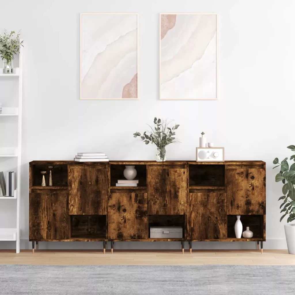 3 db füstös tölgy szerelt fa tálalószekrény