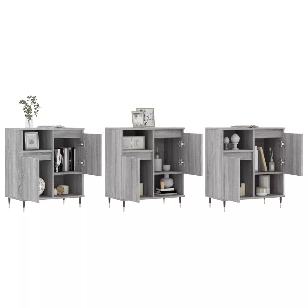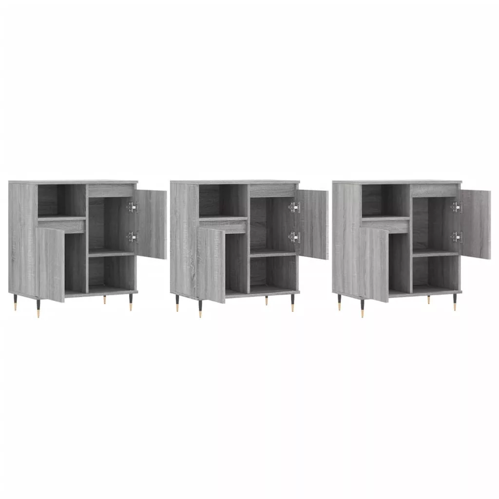 3 db szürke sonoma színű szerelt fa tálalószekrény