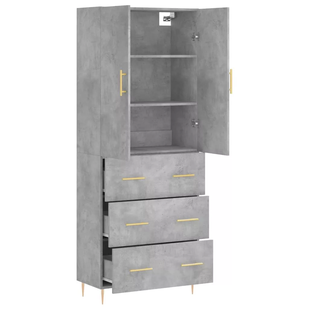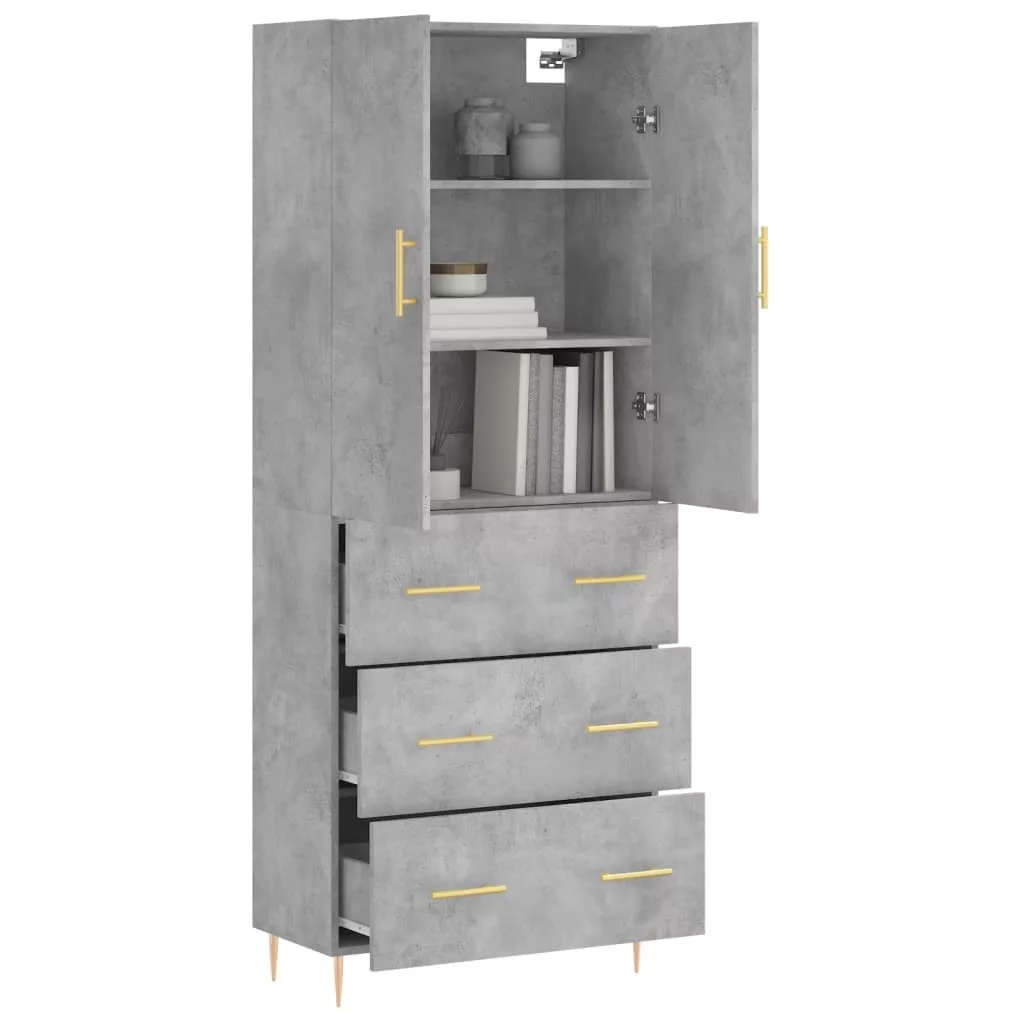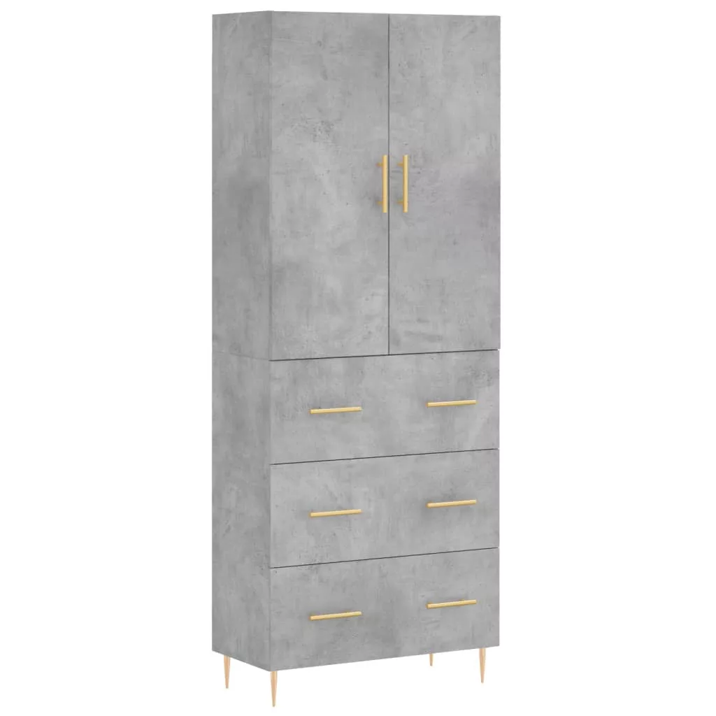 betonszürke szerelt fa magasszekrény 69,5 x 34 x 180 cm