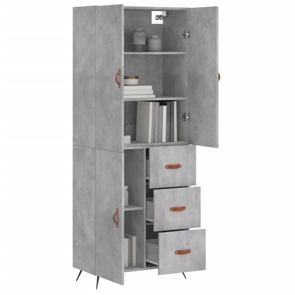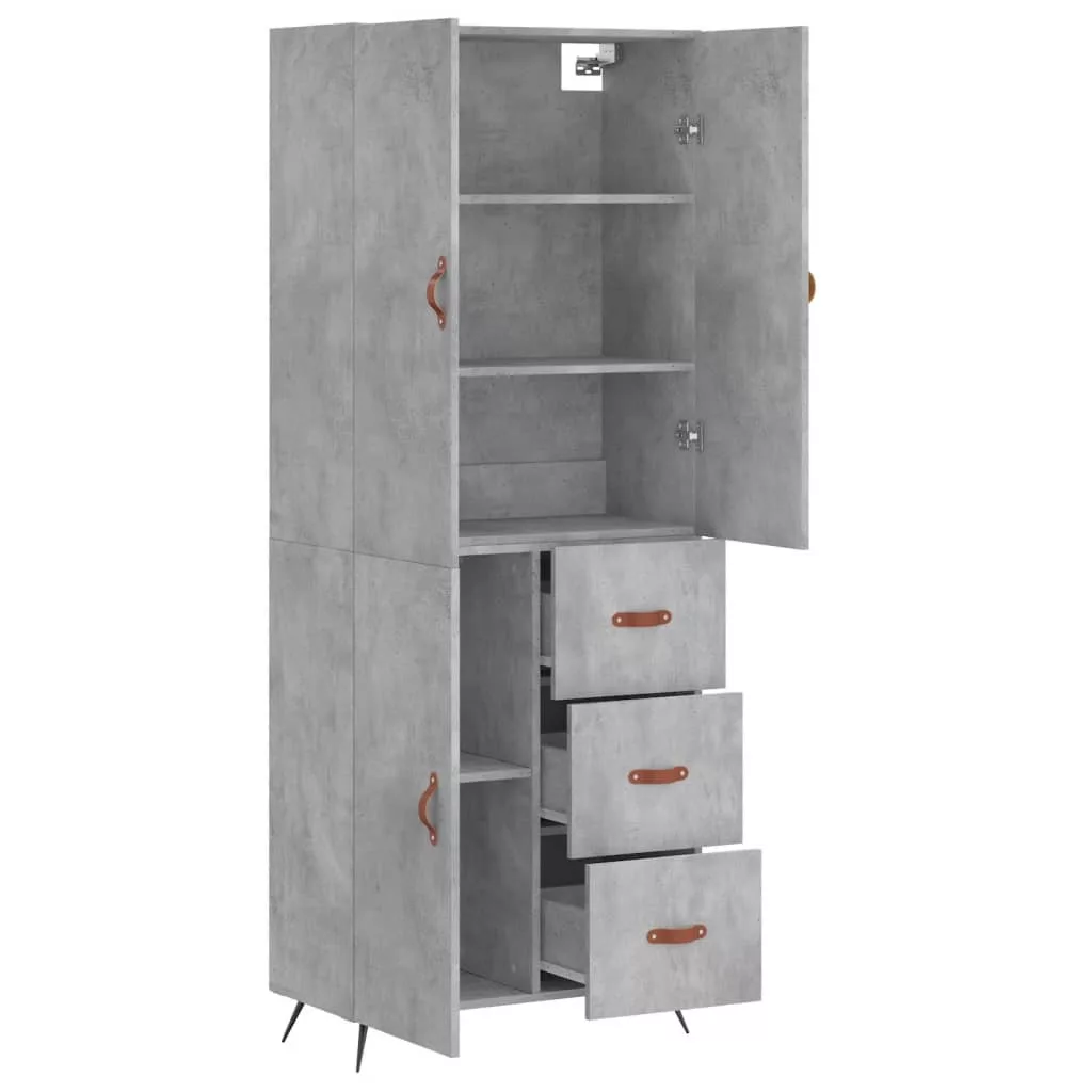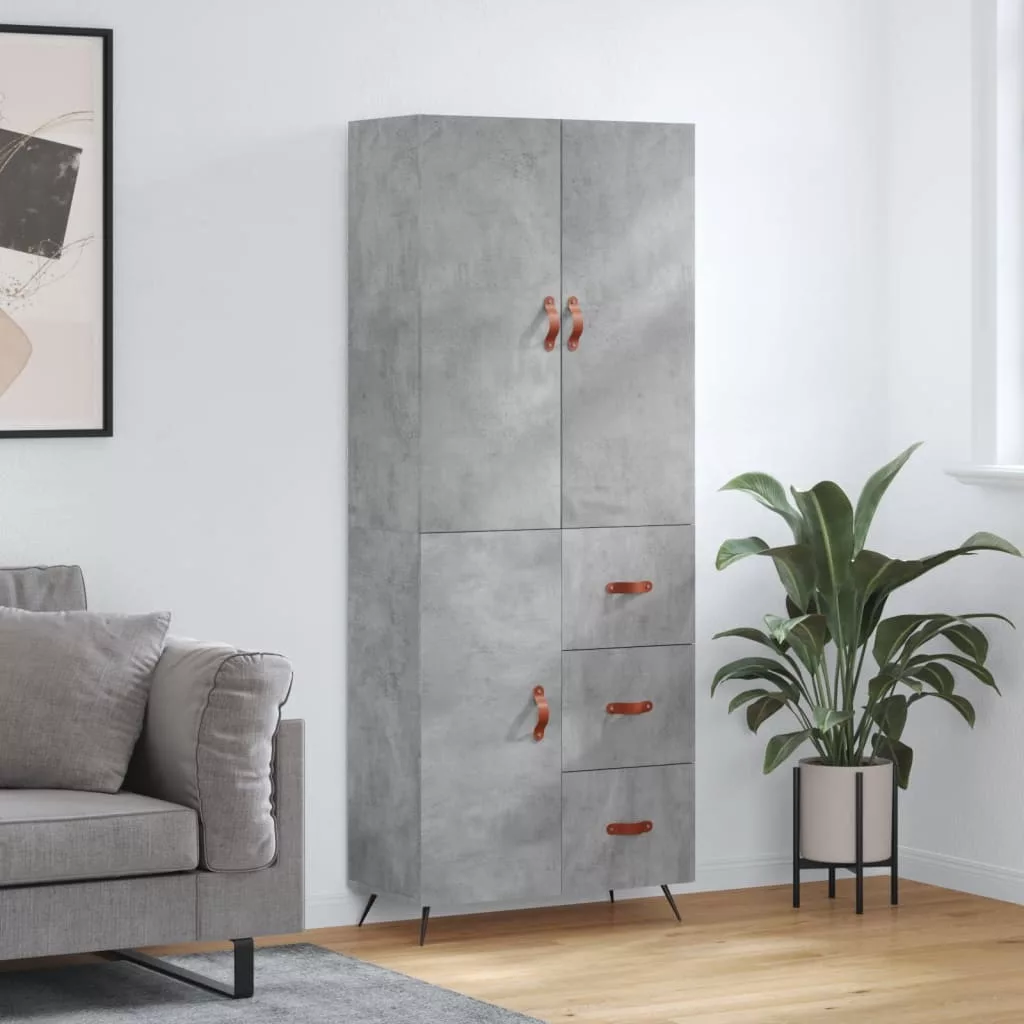 betonszürke szerelt fa magasszekrény 69,5 x 34 x 180 cm