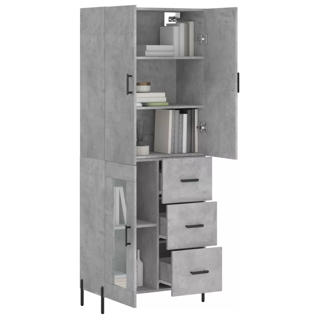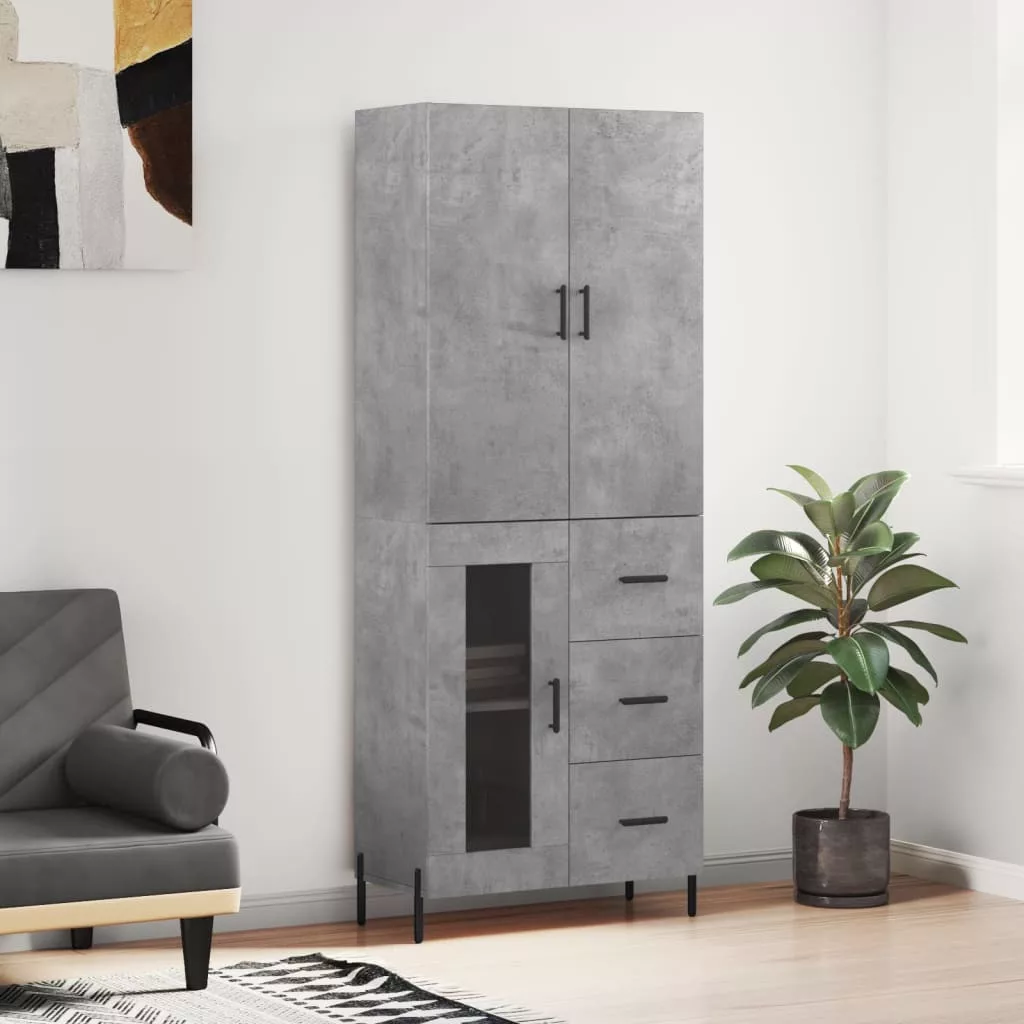 betonszürke szerelt fa magasszekrény 69,5 x 34 x 180 cm