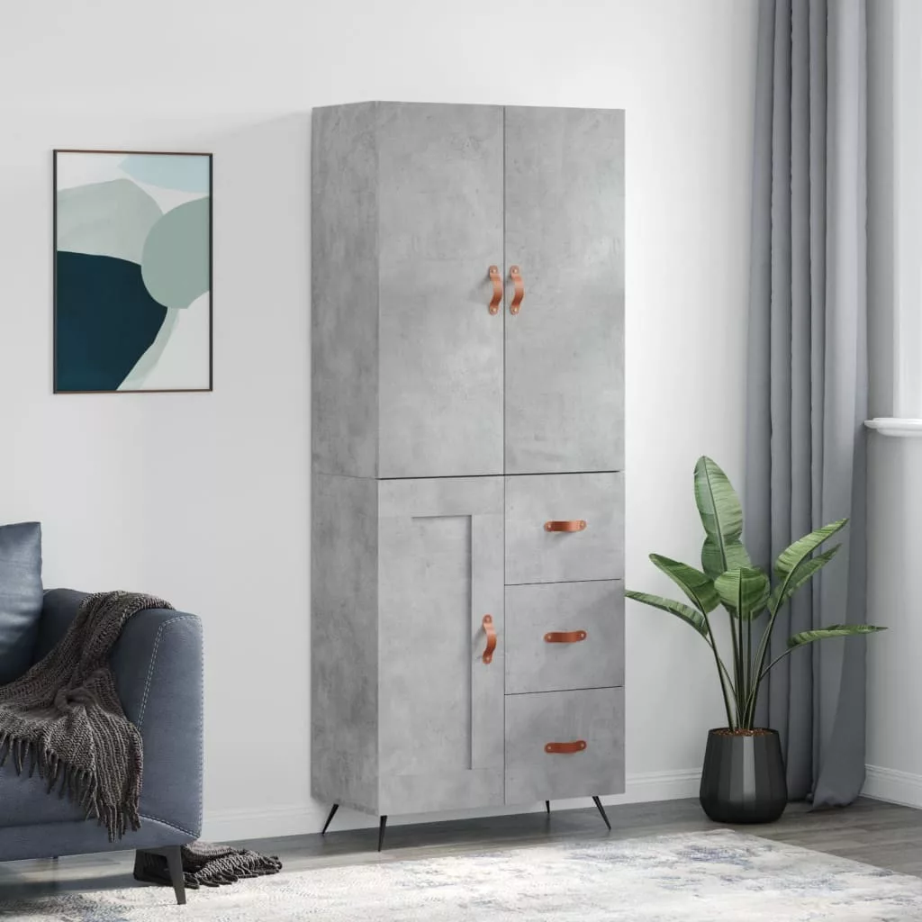 betonszürke szerelt fa magasszekrény 69,5 x 34 x 180 cm