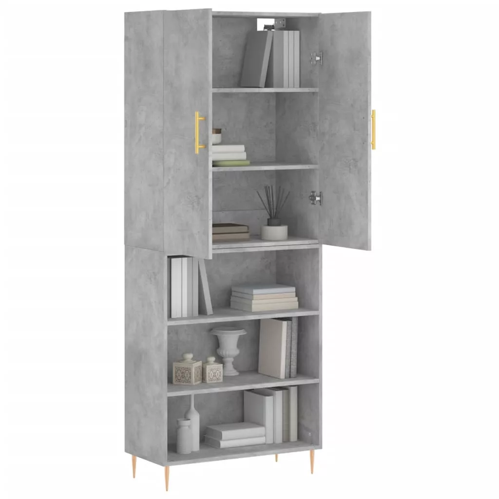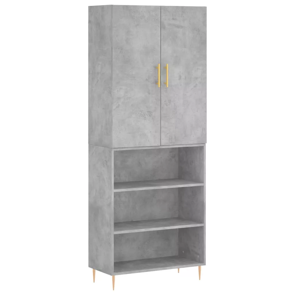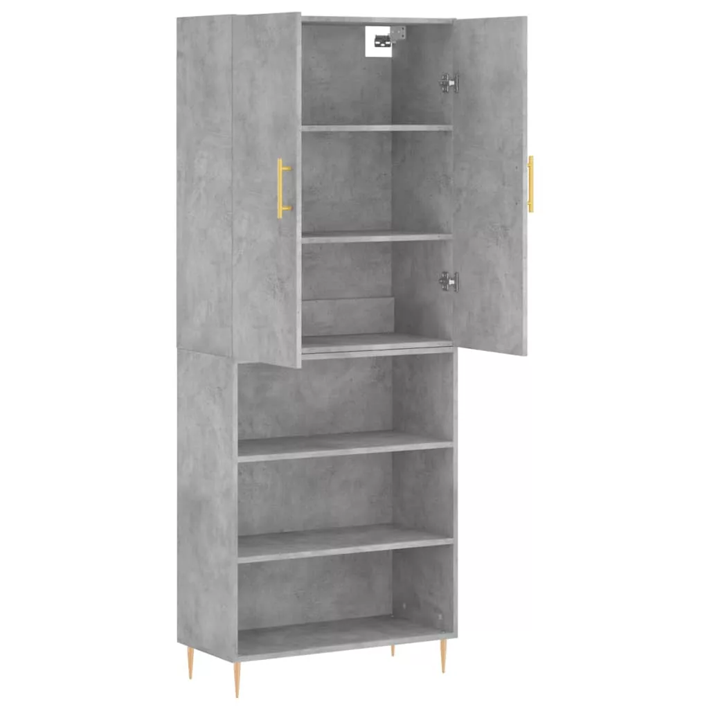 betonszürke szerelt fa magasszekrény 69,5 x 34 x 180 cm
