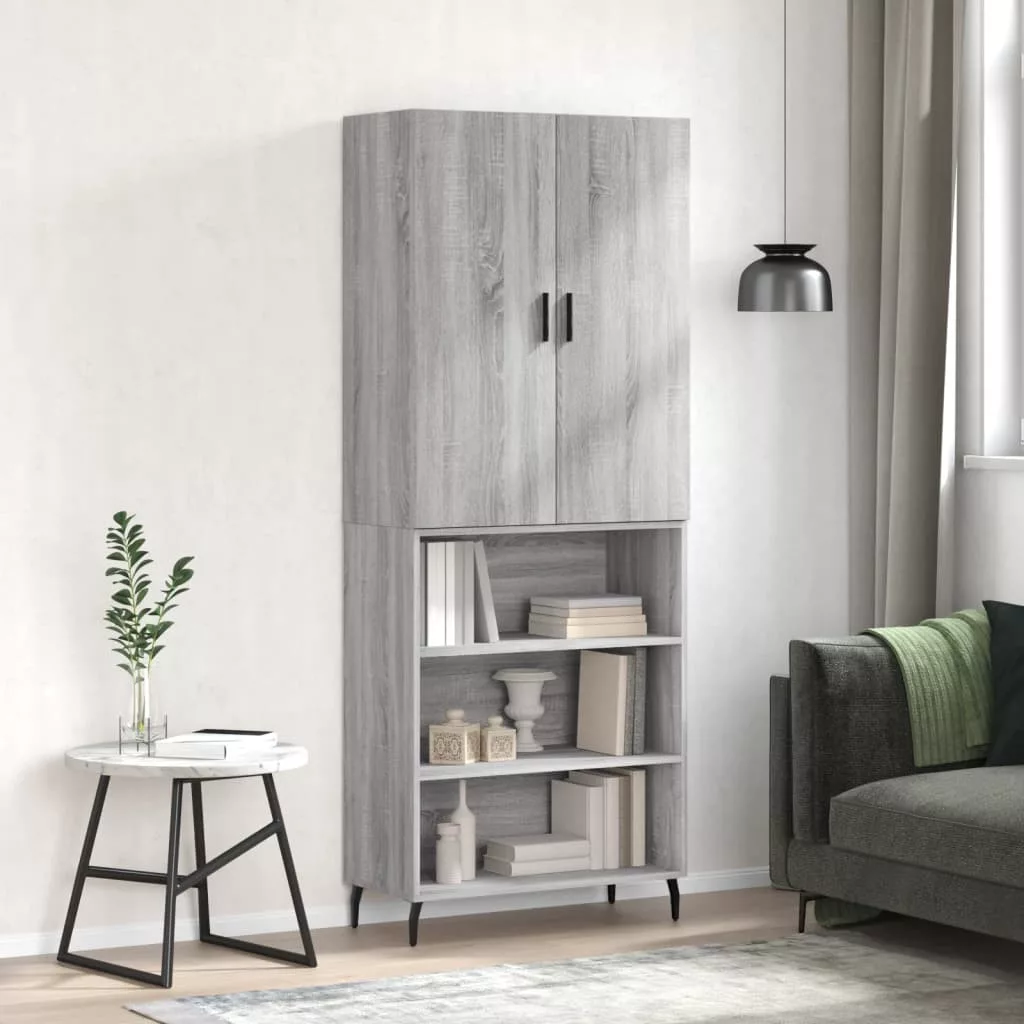 szürke sonoma szerelt fa magasszekrény 69,5 x 34 x 180 cm