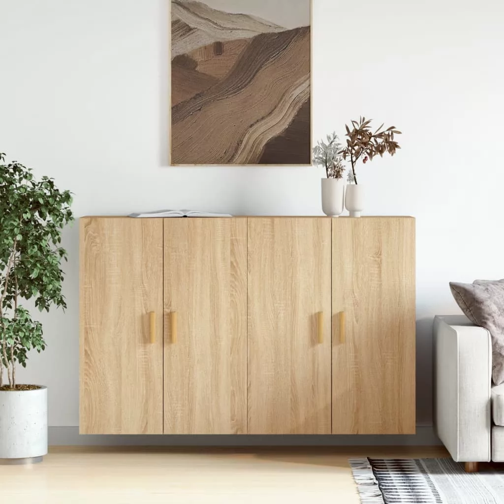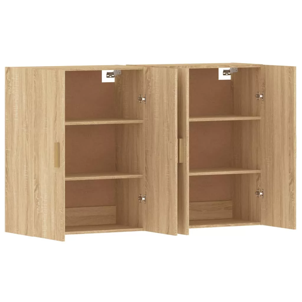2 db sonoma tölgy színű szerelt fa falra szerelhető szekrény