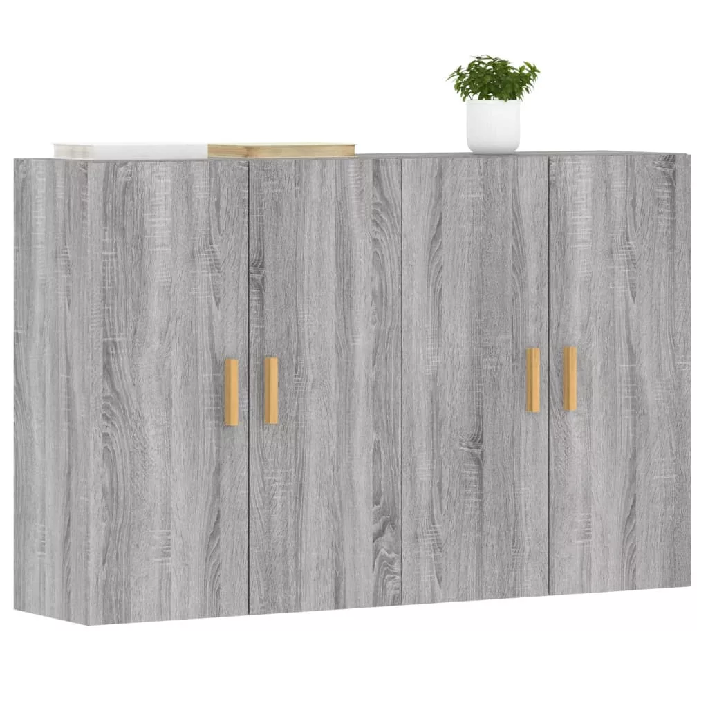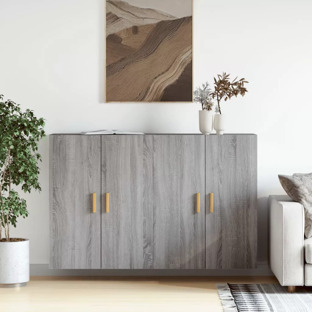 2 db szürke sonoma színű szerelt fa fali éjjeliszekrény