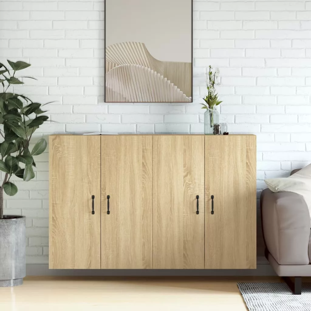 2 db sonoma tölgy színű szerelt fa falra szerelhető szekrény