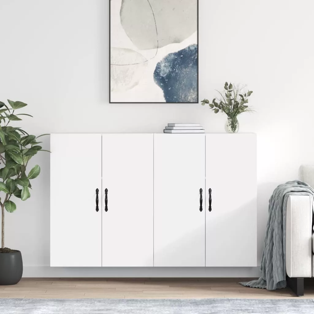 2 db fehér szerelt fa falra szerelhető szekrény