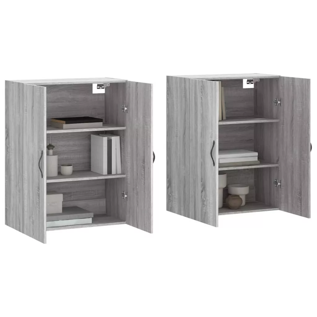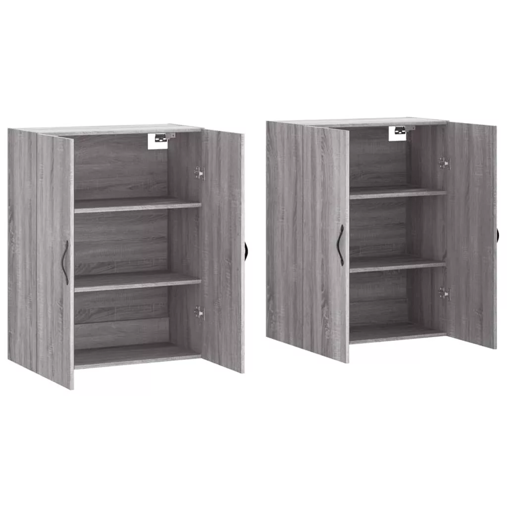 2 db szürke sonoma színű szerelt fa fali éjjeliszekrény