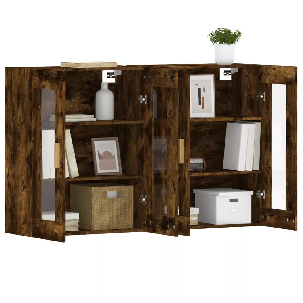 2 db füstös tölgy színű falra szerelhető fa éjjeliszekrény