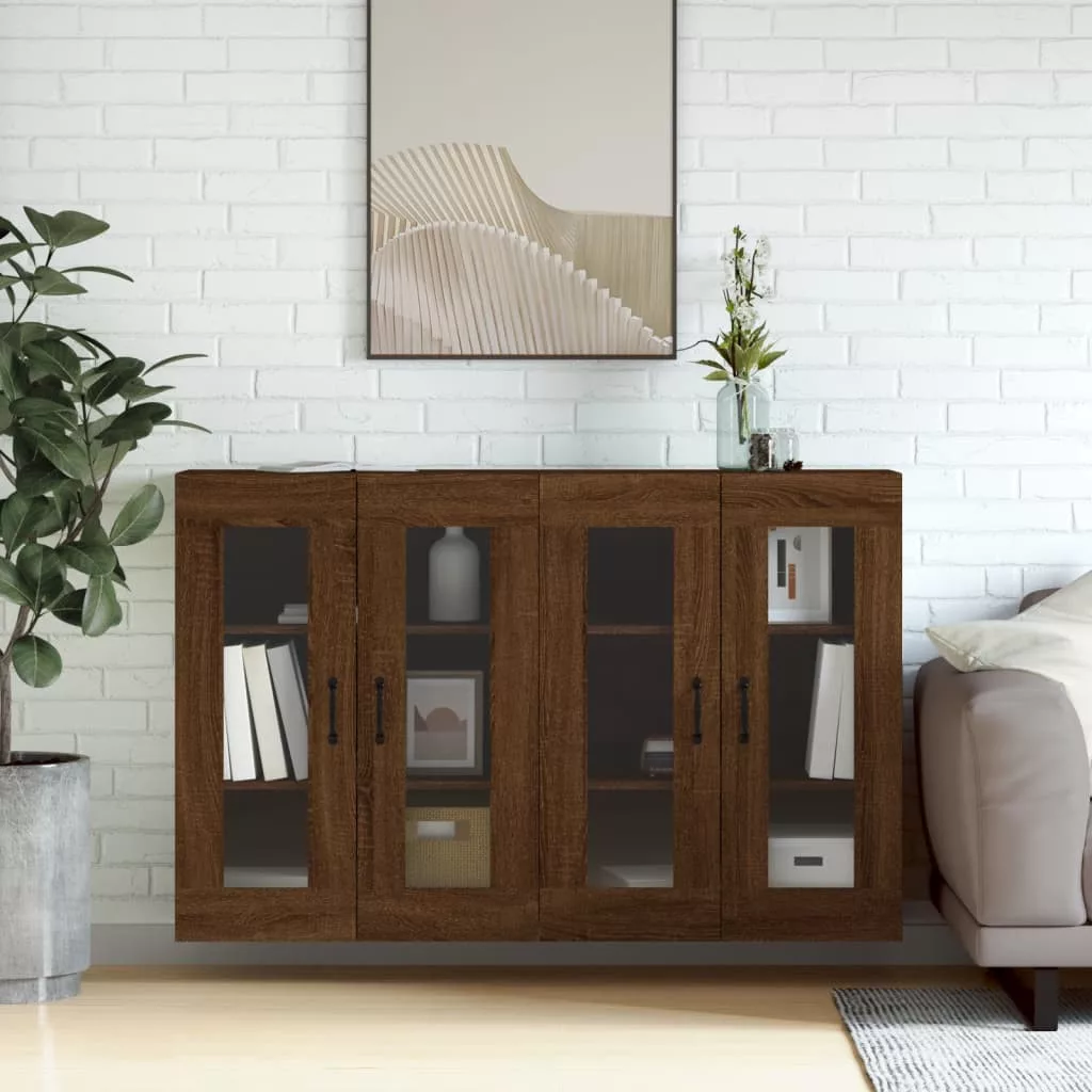 2 db barna tölgy színű szerelt fa fali szekrény