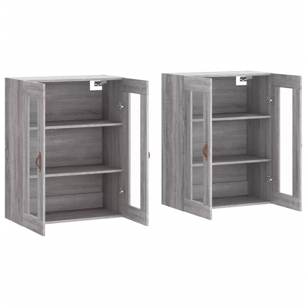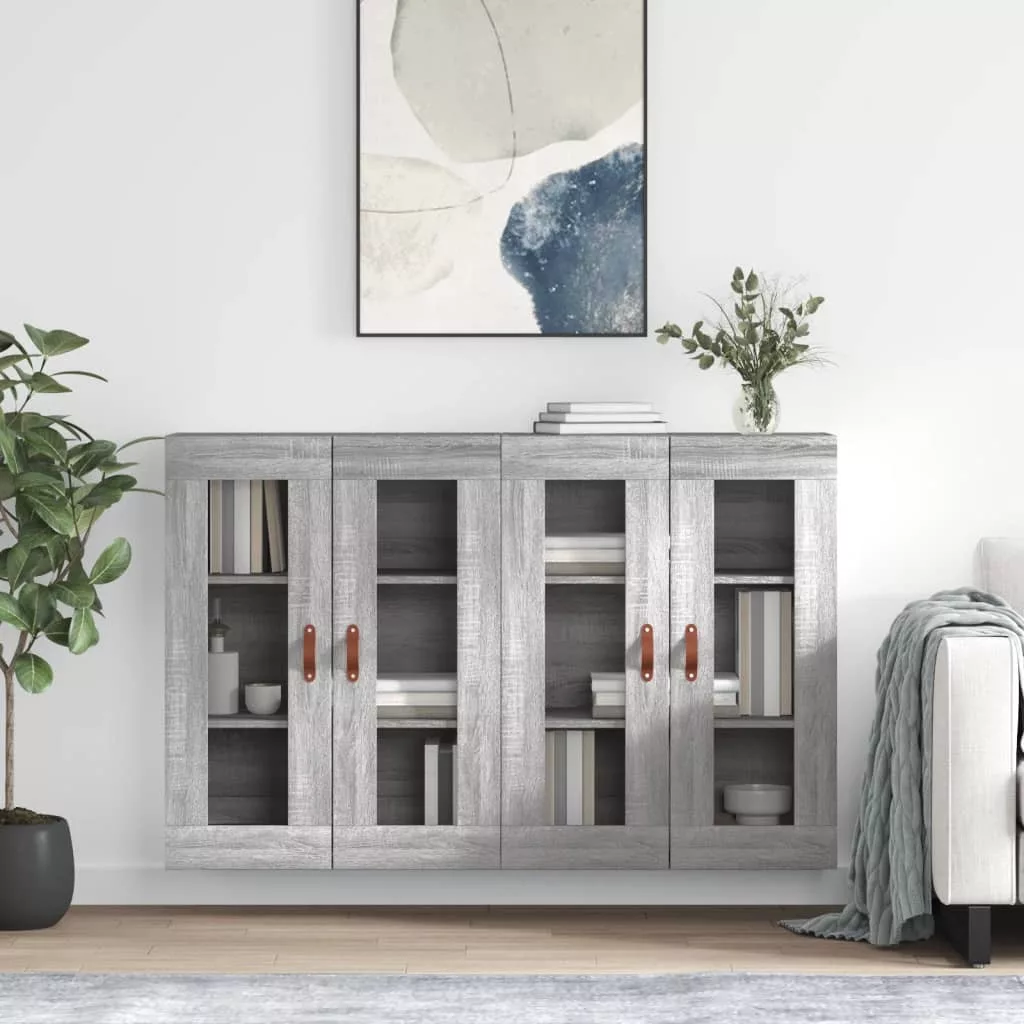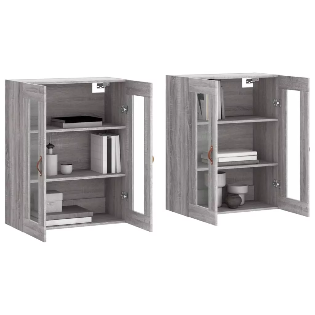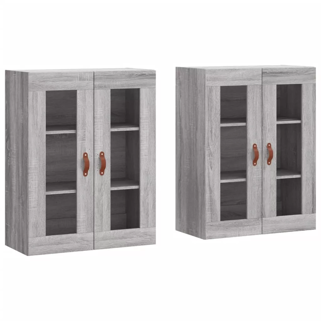 2 db szürke sonoma színű szerelt fa fali éjjeliszekrény