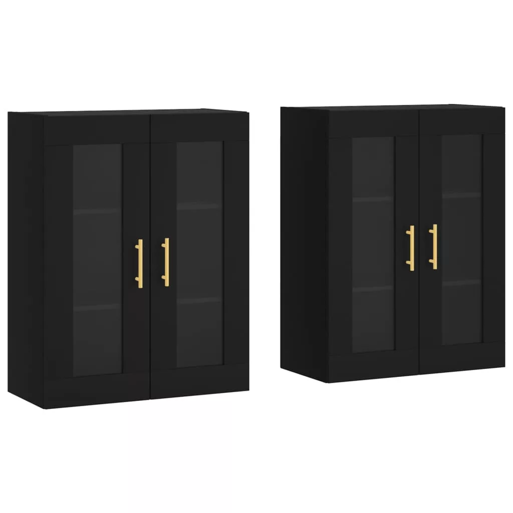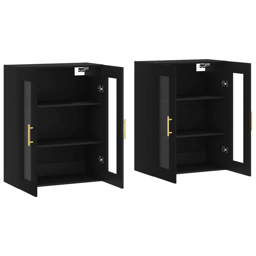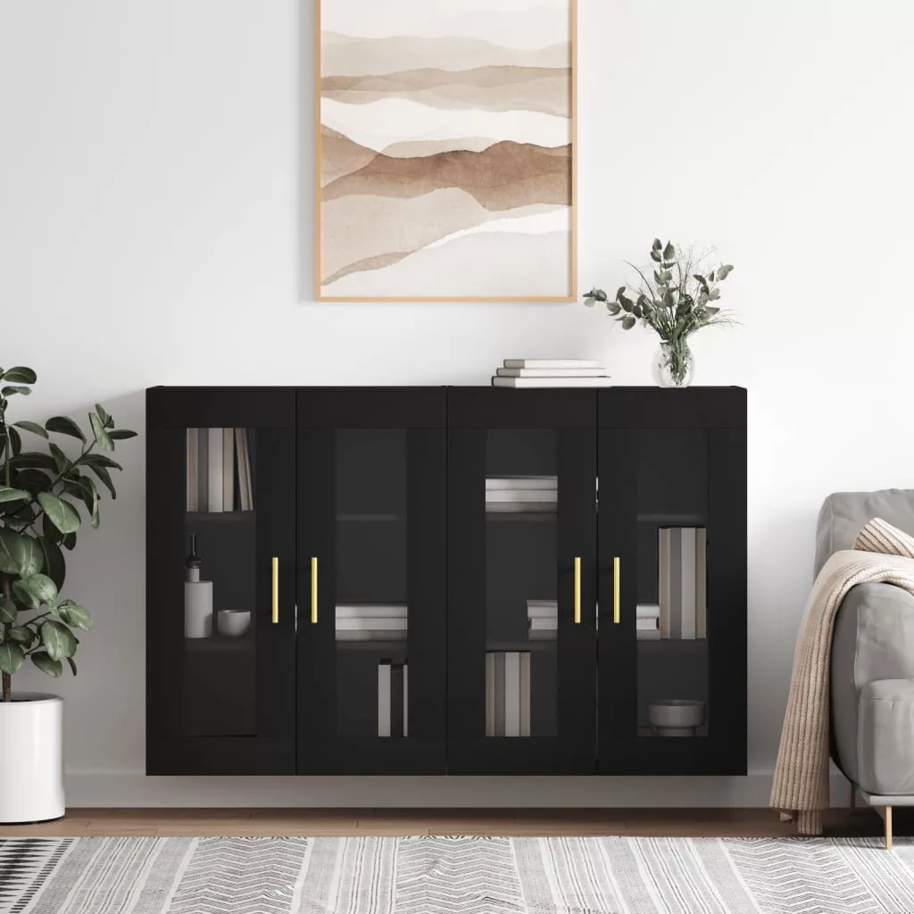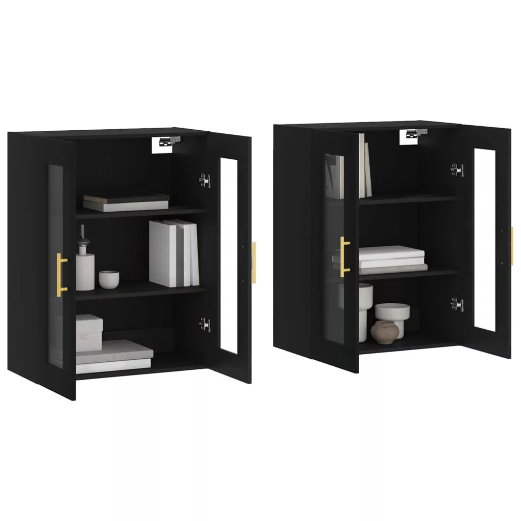 2 db fekete szerelt fa falra szerelhető szekrény