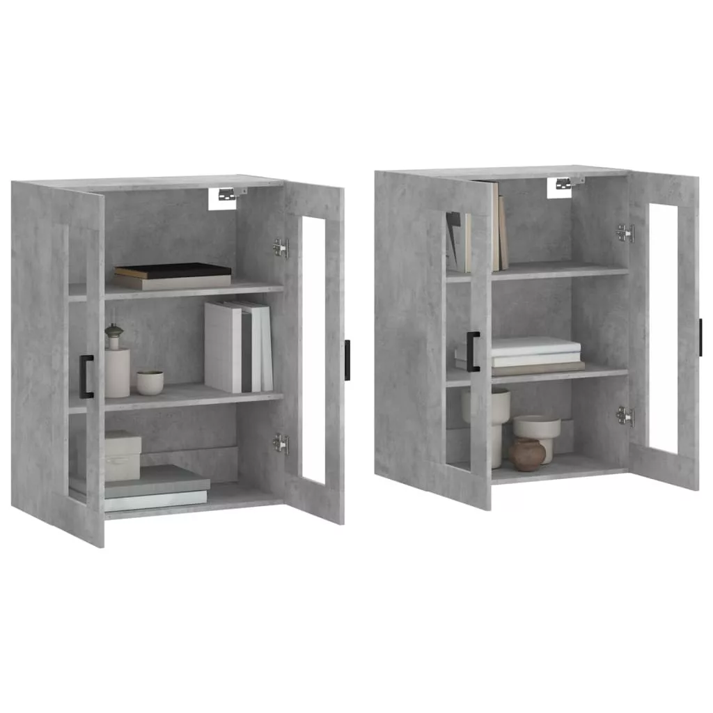 2 db betonszürke szerelt fa falra szerelhető szekrény