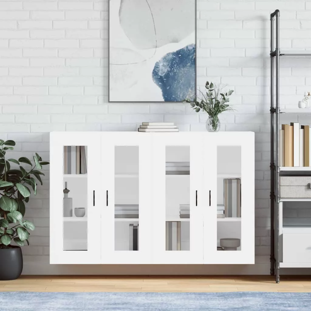 2 db fehér szerelt fa falra szerelhető szekrény