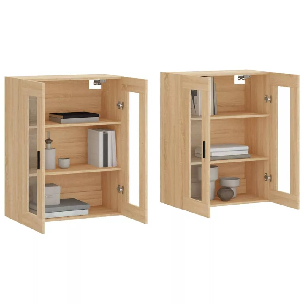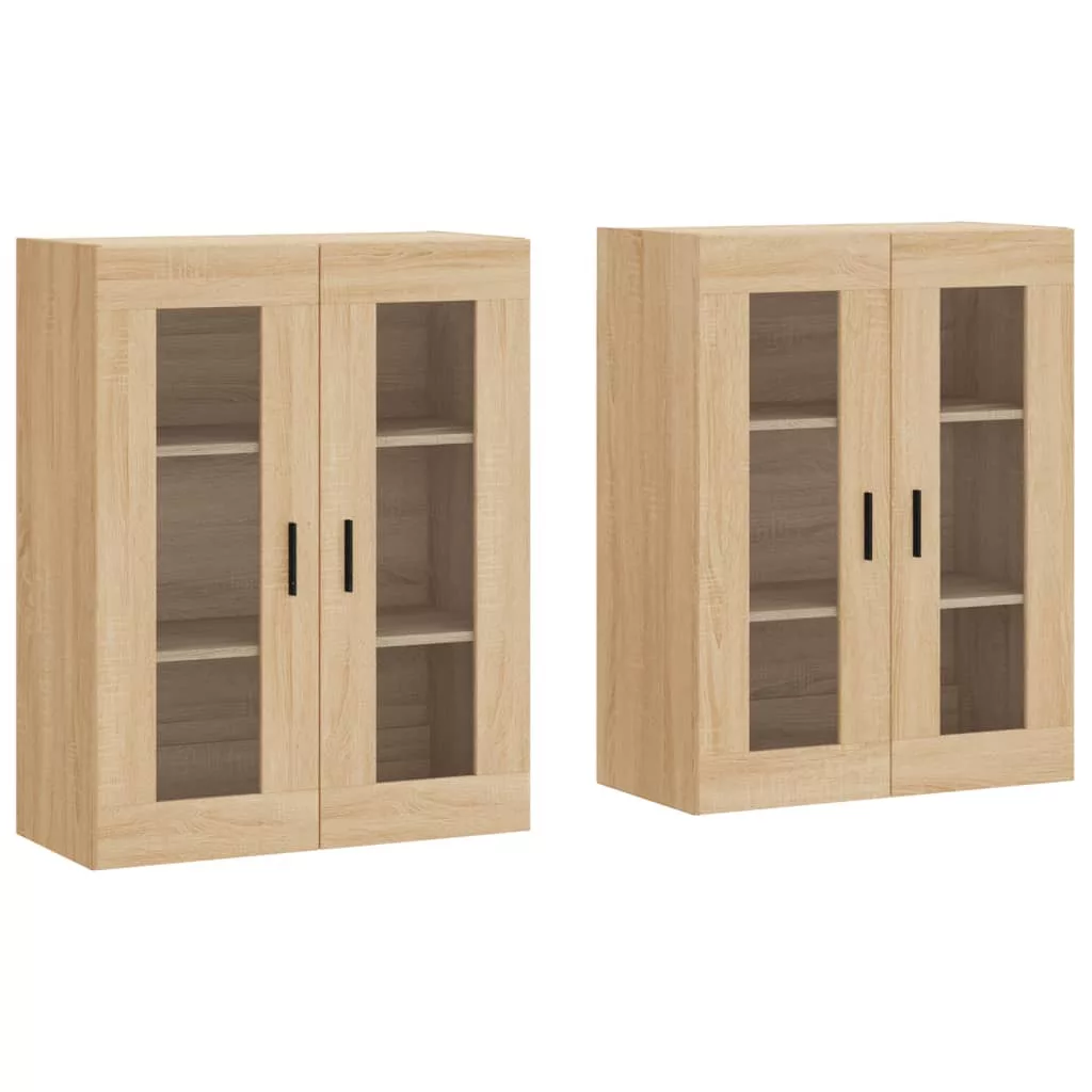 2 db sonoma tölgy színű szerelt fa falra szerelhető szekrény