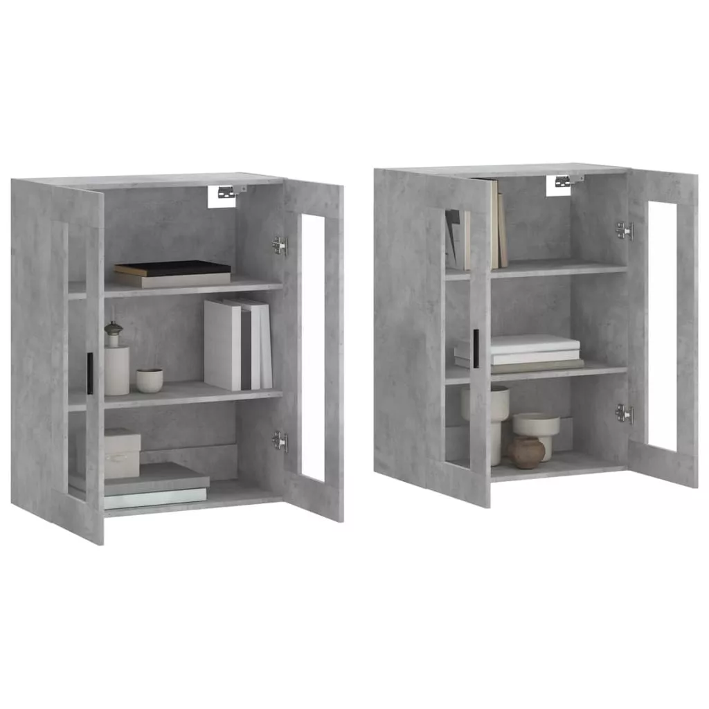2 db betonszürke szerelt fa falra szerelhető szekrény