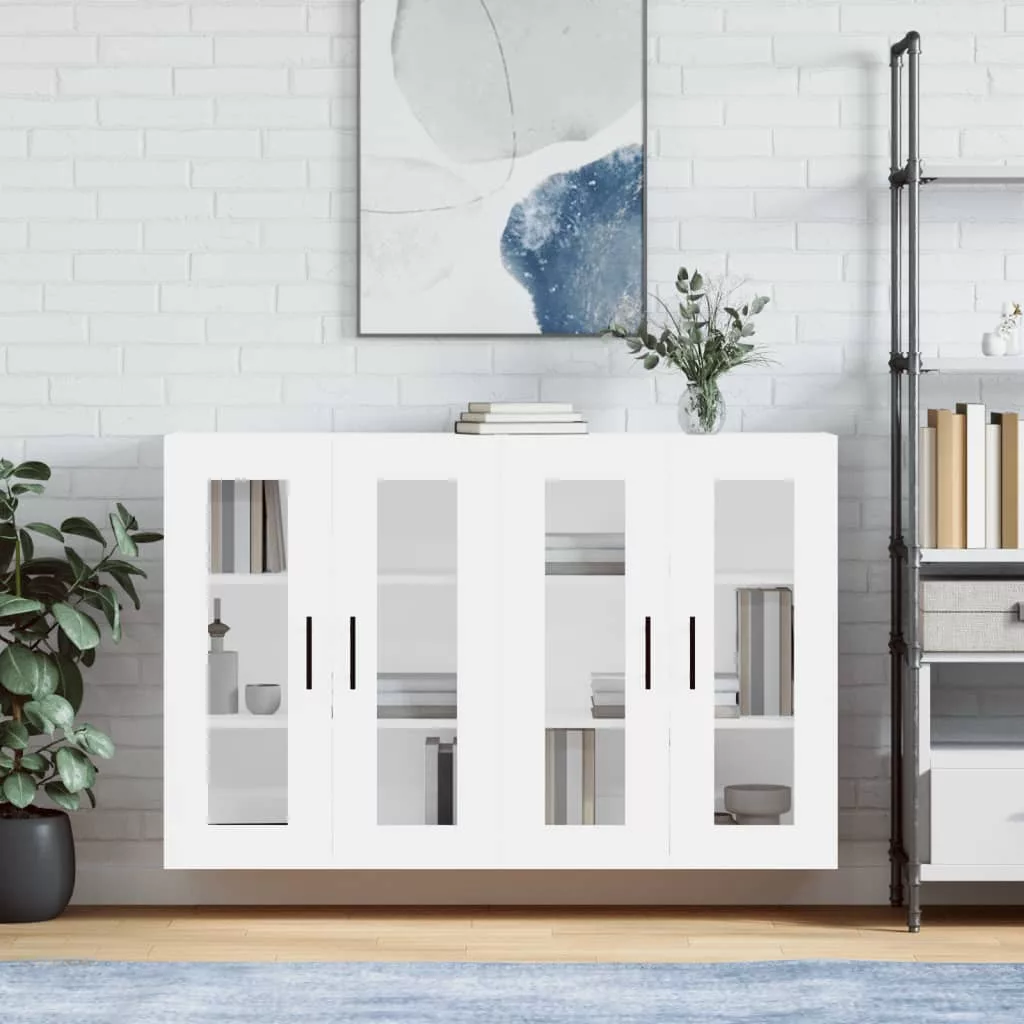 2 db fehér szerelt fa falra szerelhető szekrény