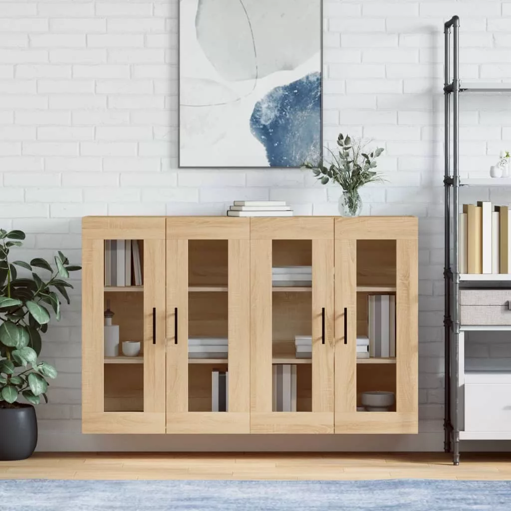 2 db sonoma tölgy színű szerelt fa falra szerelhető szekrény