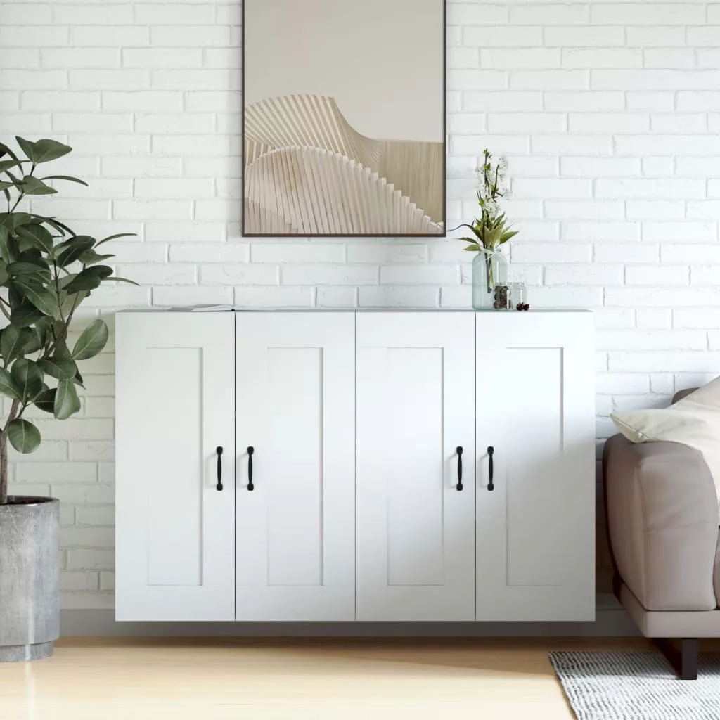 2 db fehér szerelt fa falra szerelhető szekrény