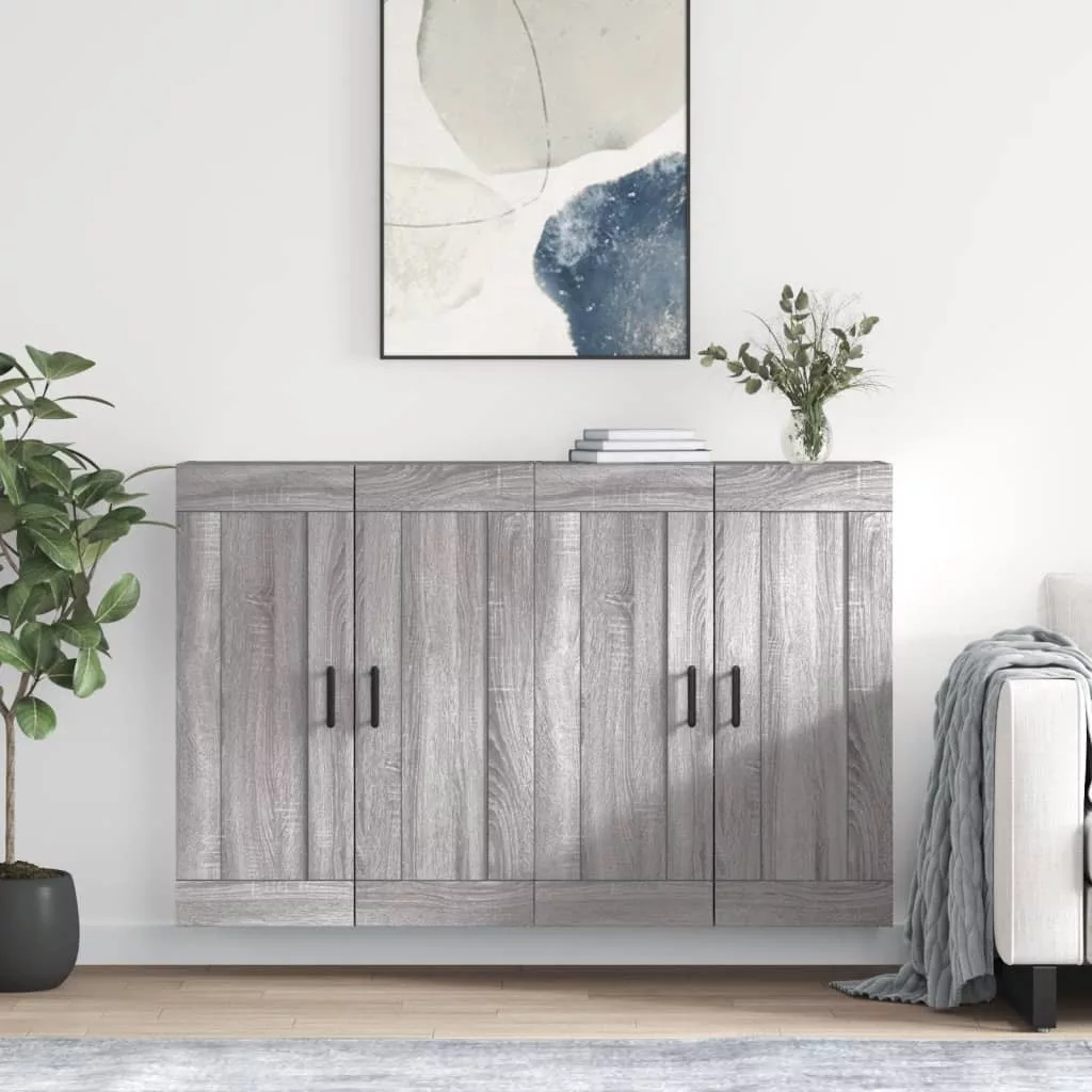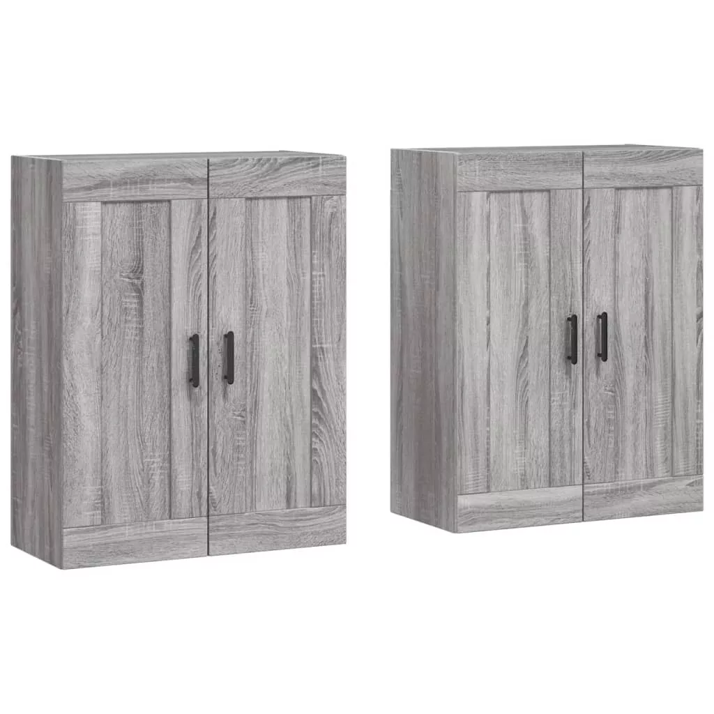 2 db szürke sonoma színű szerelt fa fali éjjeliszekrény