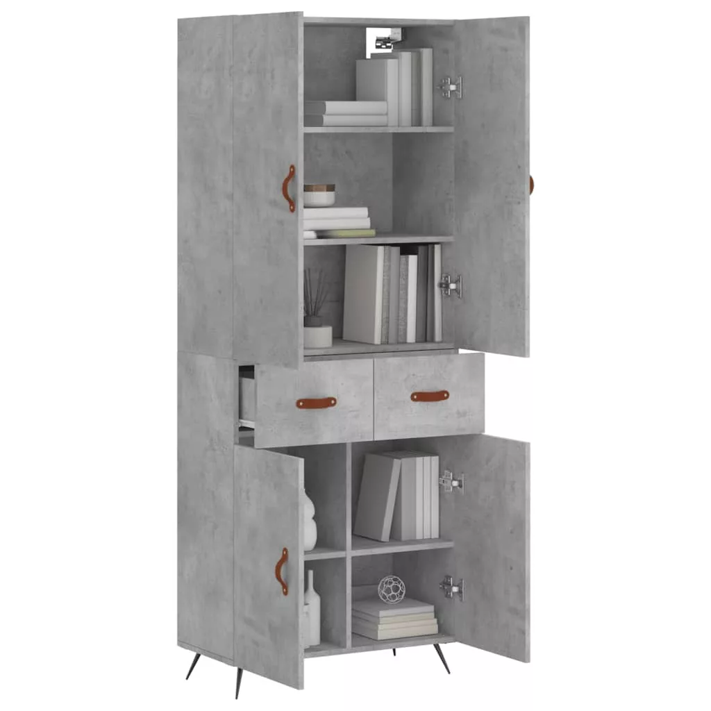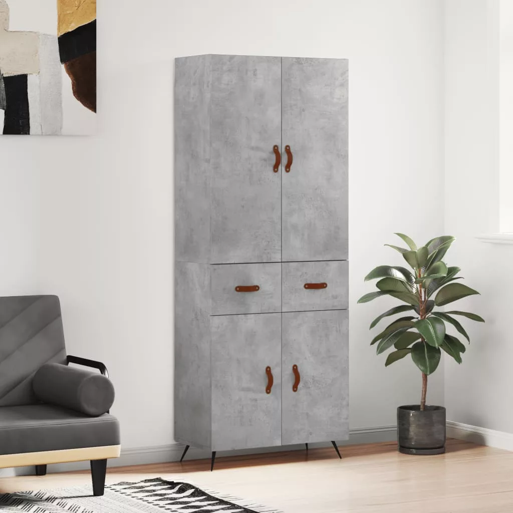 betonszürke szerelt fa magasszekrény 69,5 x 34 x 180 cm